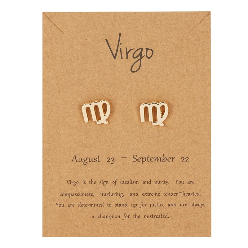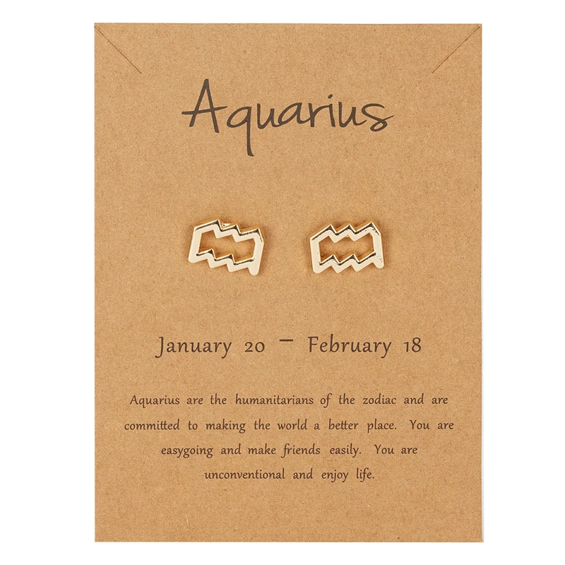 Серьги из серии созвездий женские, ювелирное изделие с поздравительной открыткой, серьги-гвоздики золотого цвета, Зодиак, 1 пара