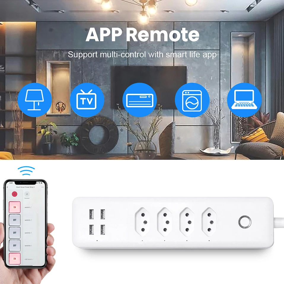 Смарт-удлинитель AVATTO Brazil с 4 выходами, 4 порта USB, удлинитель 1,4 м, голосовая связь, работает с Alexa, Google Home