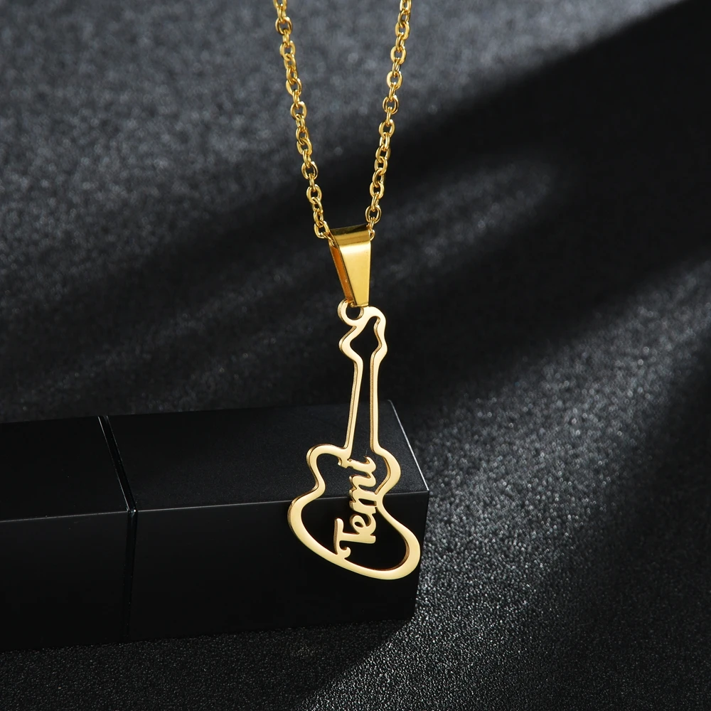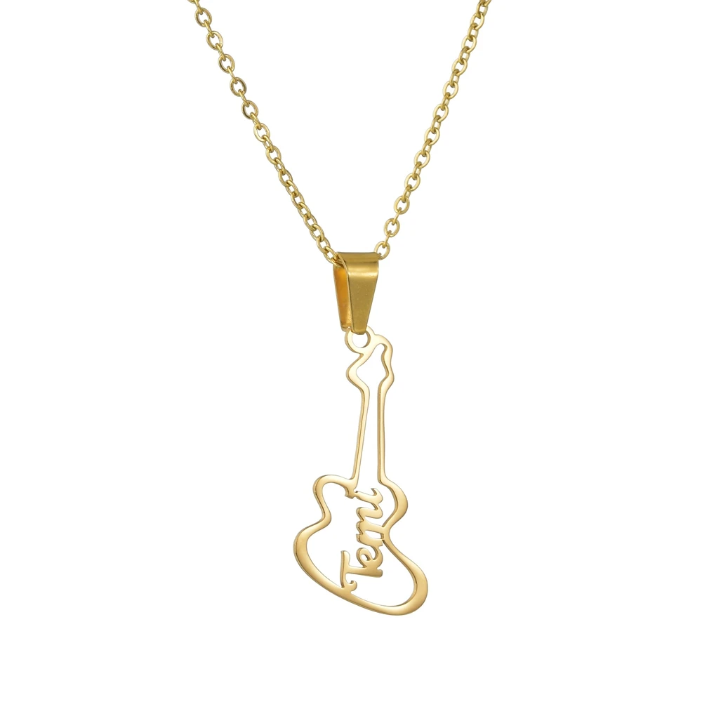 Название: Goxijite ожерелье из нержавеющей стали для женщин и детей, Золотая гитара, надпись, кулон, ожерелье, ювелирные изделия, аксессуары