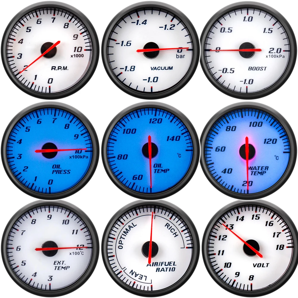 Тахометр 60 мм, усилитель вольтметр, соотношение воздуха и топлива, манометр EGT, Вакуумный датчик температуры воды, масла, масла, автомобильный индикатор температуры для 12 В автомобиля, Синяя подсветка