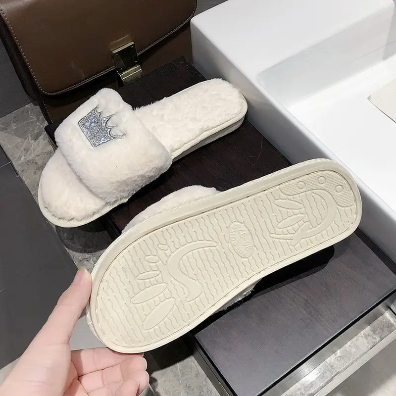 Пушистые шлепанцы для женщин, домашние тапочки, зимняя теплая обувь...