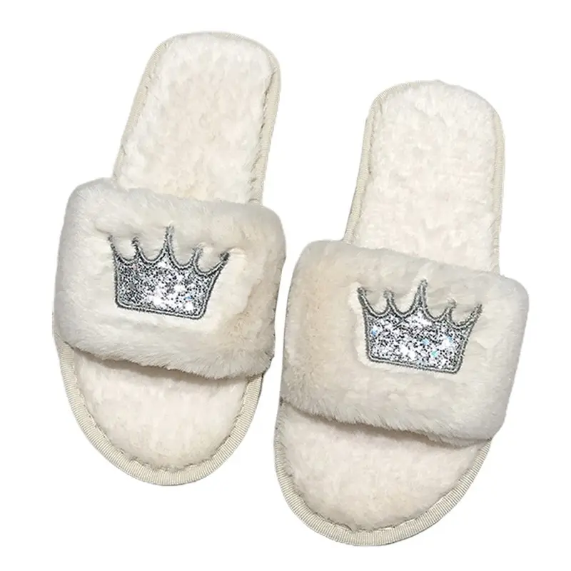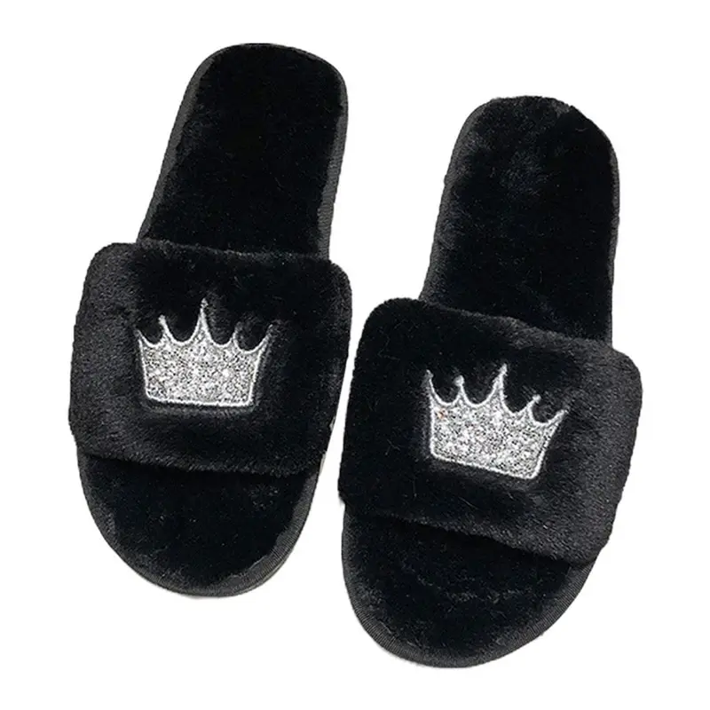 Шлепанцы женские с аппликацией, теплые меховые тапочки, плюшевые сл...