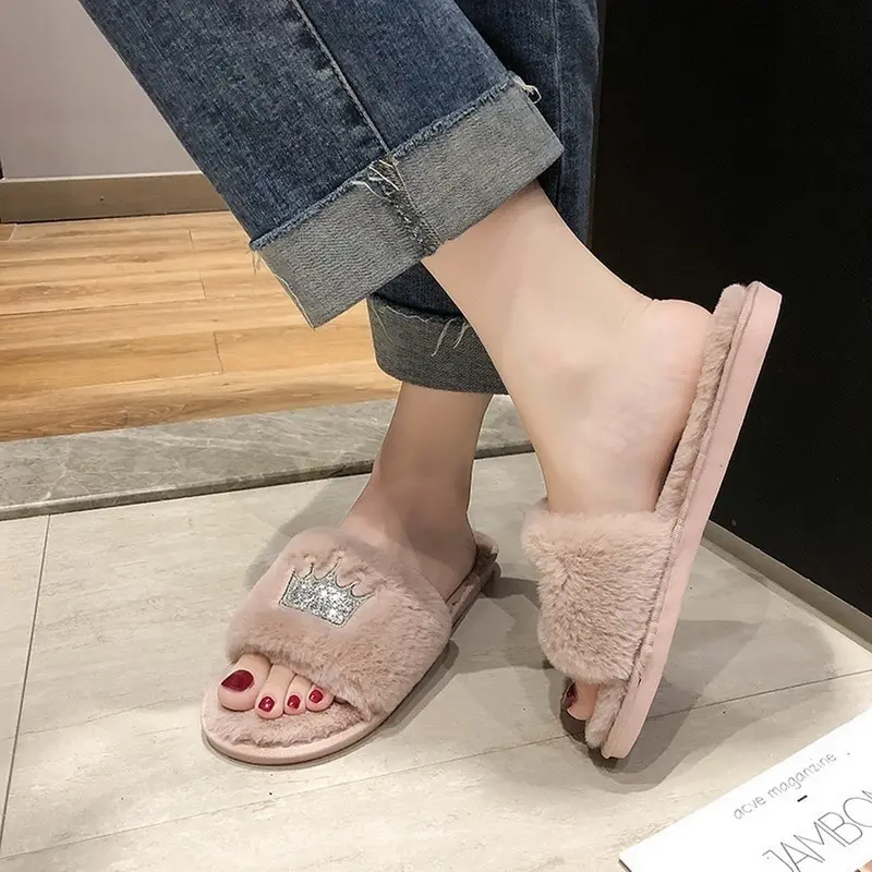 LitthingЖенские меховые шлепанцы; Летние блестящие шлепанцы; Плюшев...