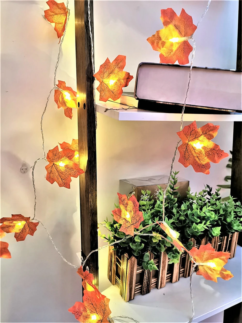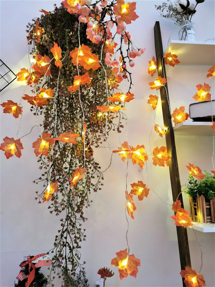 Хэллоуин светодиодный гирлянда кленовые листья сказочные огни красный зеленый лист лоза 4,5 В USBпитание от батареи гирлянда забор перила декоративные
