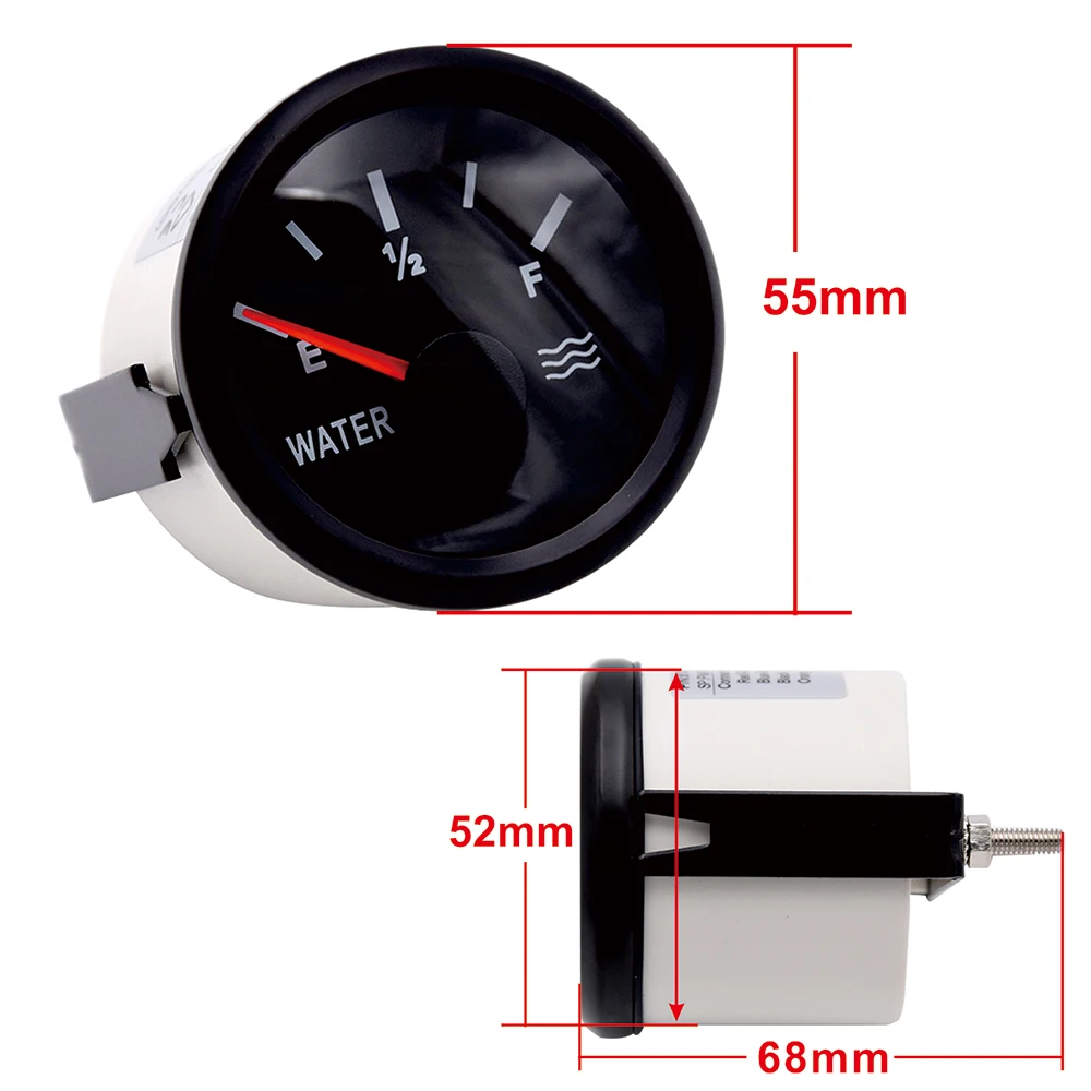 -Размер: диаметр 52 мм-Диапазон индикации: E - F-Рабочее напряжение: 9-32 В-Водонепроницаемость: IP67-Материал: нержавеющая сталь-Сигнал: 0-190 Ом/240-33 Ом-Рабочая температура: -30 ~ + 75-Температура хранения: -40 ~ + 85-Цвет: белый и серебристый, белый и белый, черный и серебристый, черный