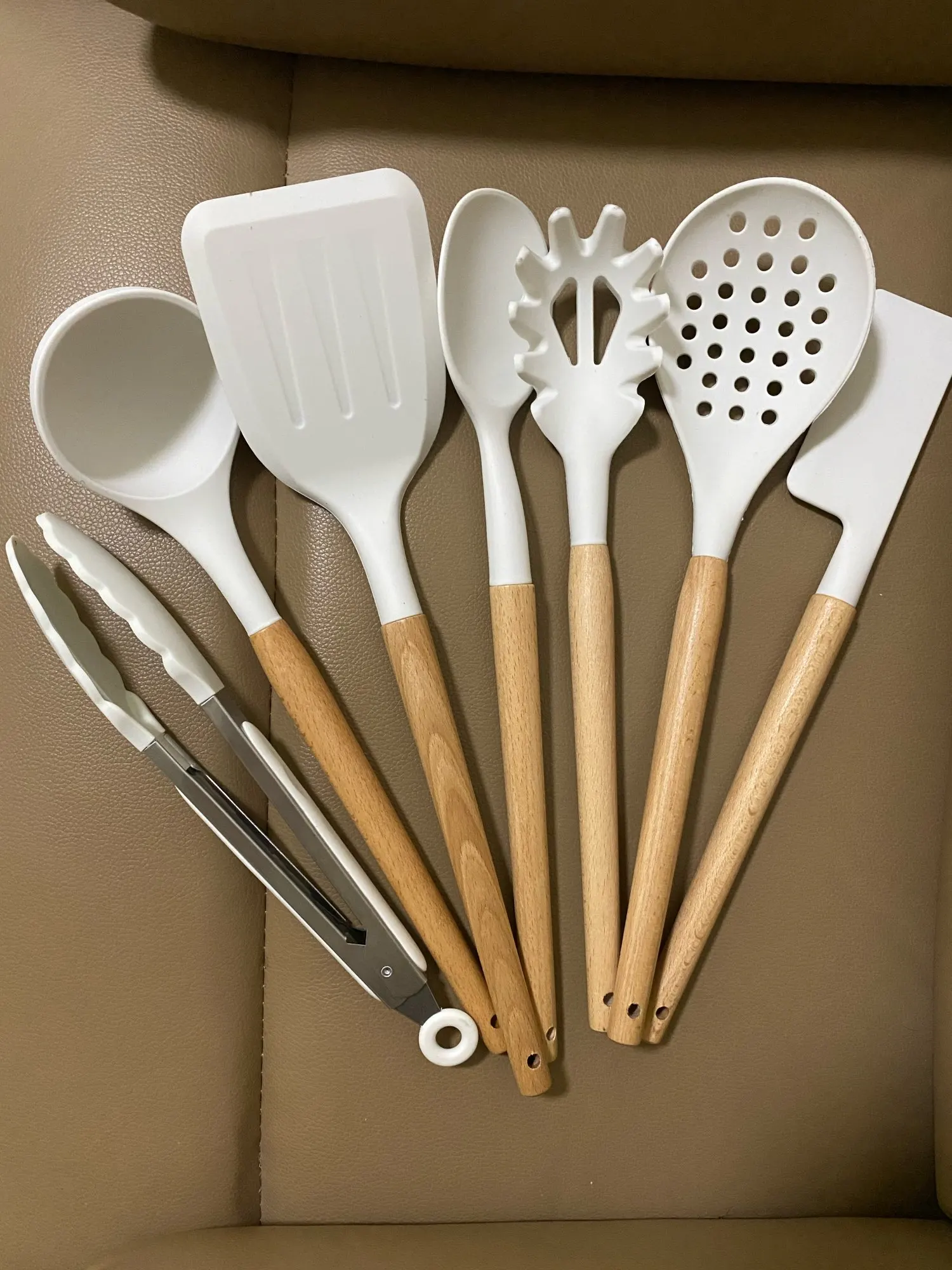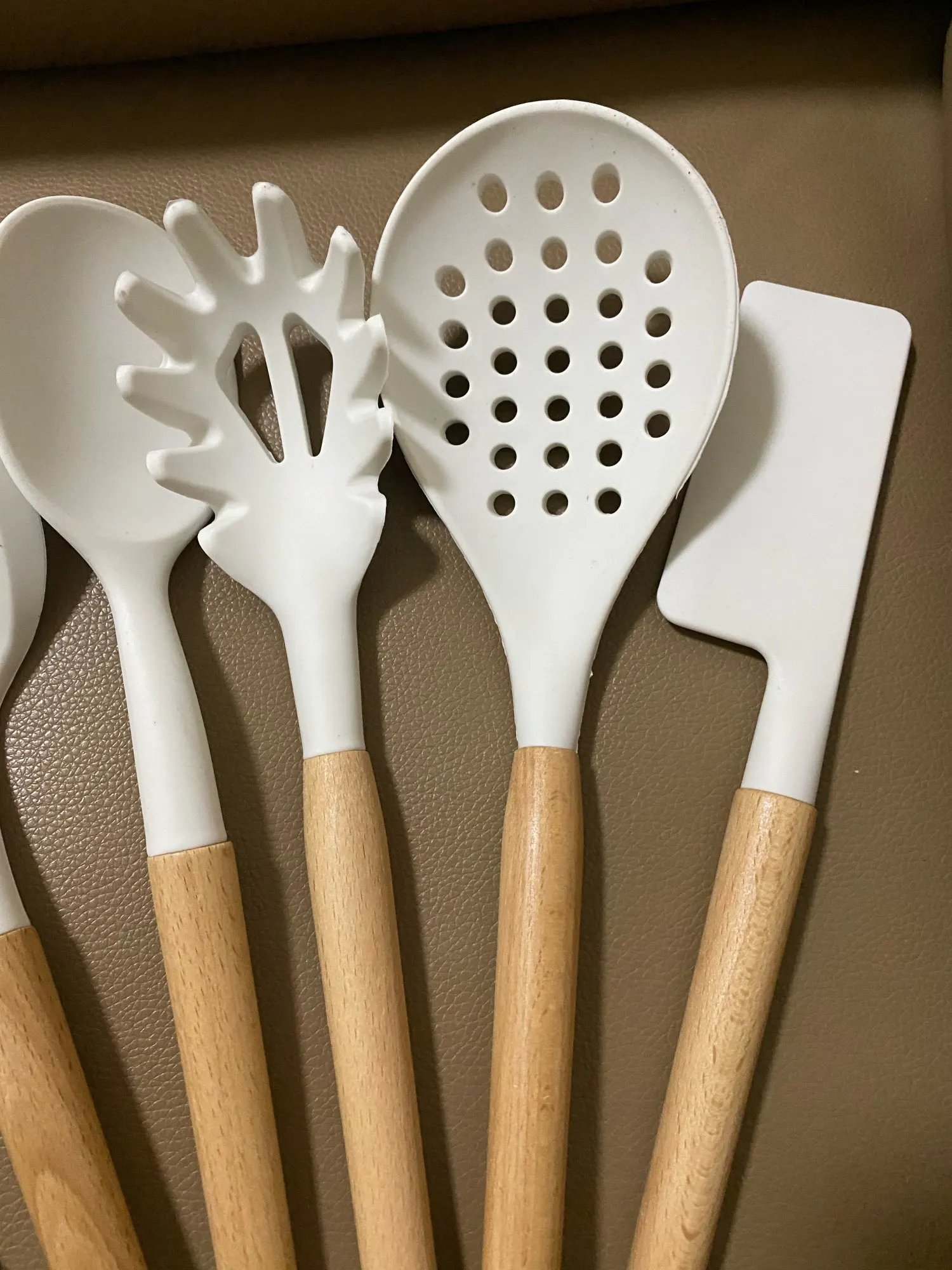 Белый инструмент кухонные приборы, силиконовая посуда с деревянной многофункциональной ручкой, лопатка с антипригарным покрытием, лопатка для взбивания яиц