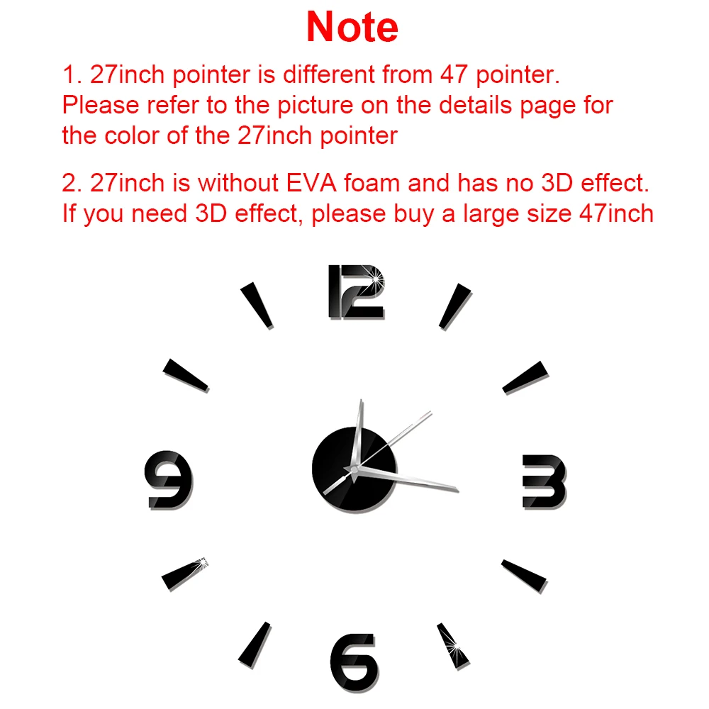Особенности:1. Акриловая поверхность, блестящая и Легко протирается.2. Металлические указатели, высокая устойчивость к коррозии, точность и долговечность.3. Бесшумный механизм, обеспечивает спокойную среду, хорошо подходит для сна.4. Высококачественная ЭВА, густая губка, не выцветает, Экологически чистая и Нетоксичная.5. Настенные часы и наклейка, Бесплатный DIY Размер часов, хорошая кухня, столовая, гостиная, офисное украшение.6. DIY дизайн позволяет регулировать размер часовСпецификация:Название продукта: большие 3D настенные часы DIY акриловые зеркальные настенные наклейкиМатериал: акрил + металл + ЭваМатериал наклейки: пена EVA (27 дюймов не включает пену EVA)Материал часов: металлТолщина: 10 мм(Толщина 27 дюймов-1 мм)Размер:Диаметр: 27 дюймов/37 дюймов/47 дюймов