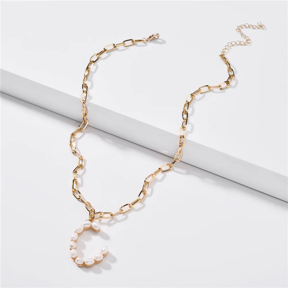F.I.N.S 2020 Новые Подвески в стиле INS с пресноводным жемчугом и большим инициалом алфавита для женщин панцирное толстое длинное ожерелье с цепочкой для женщин