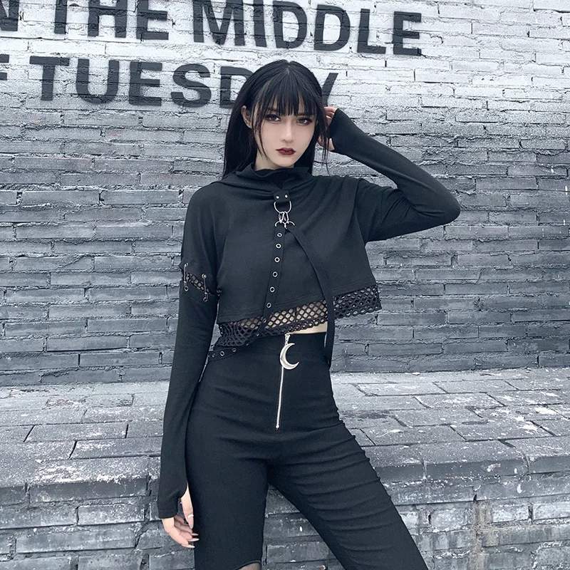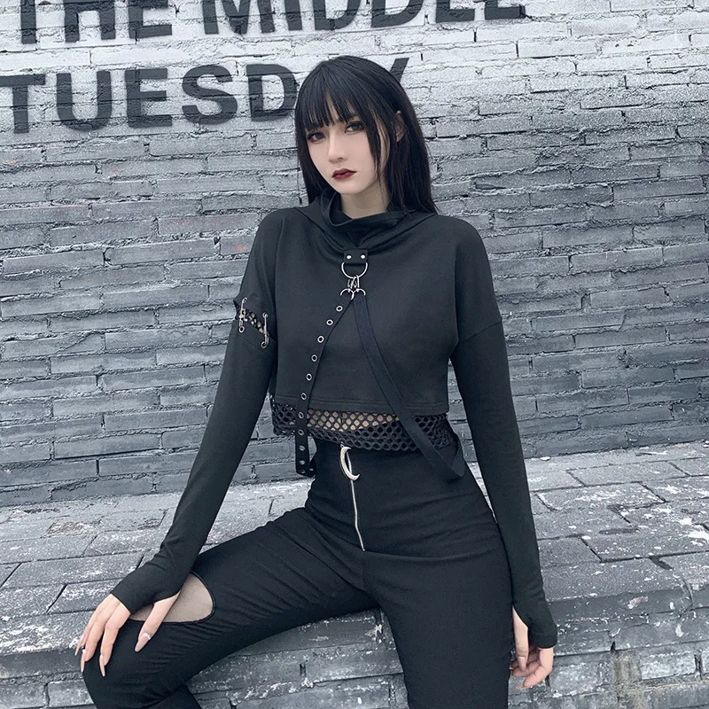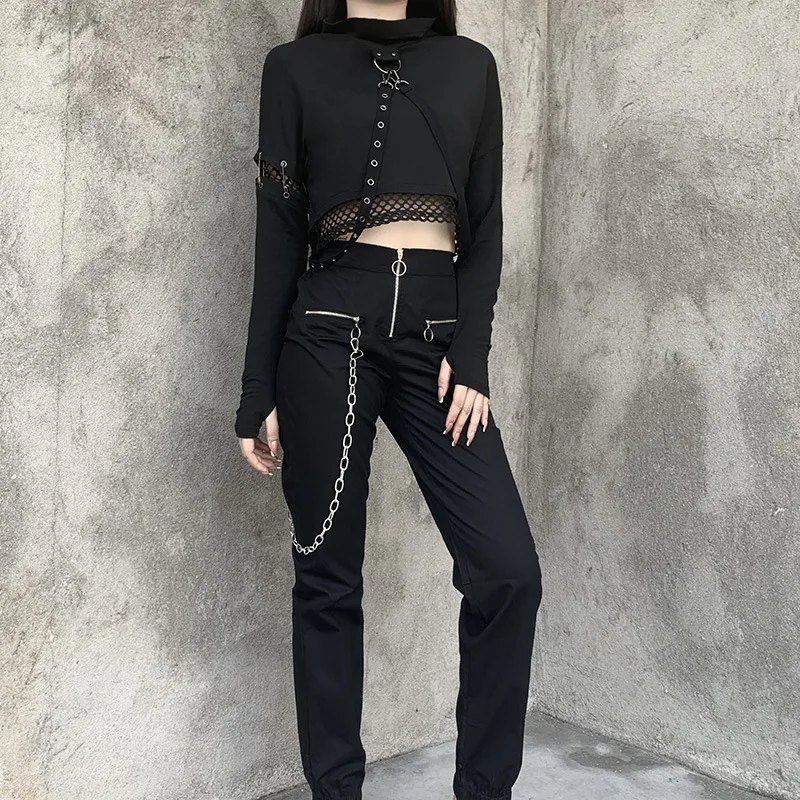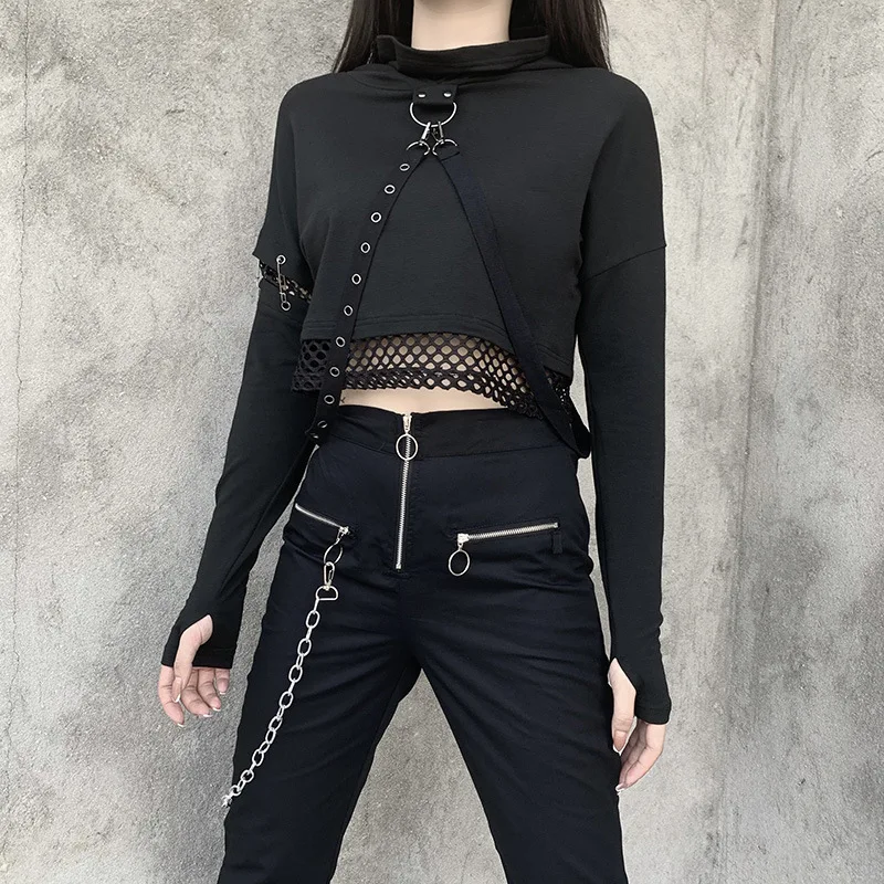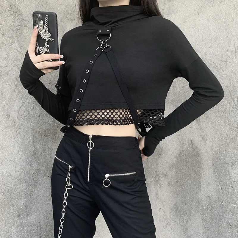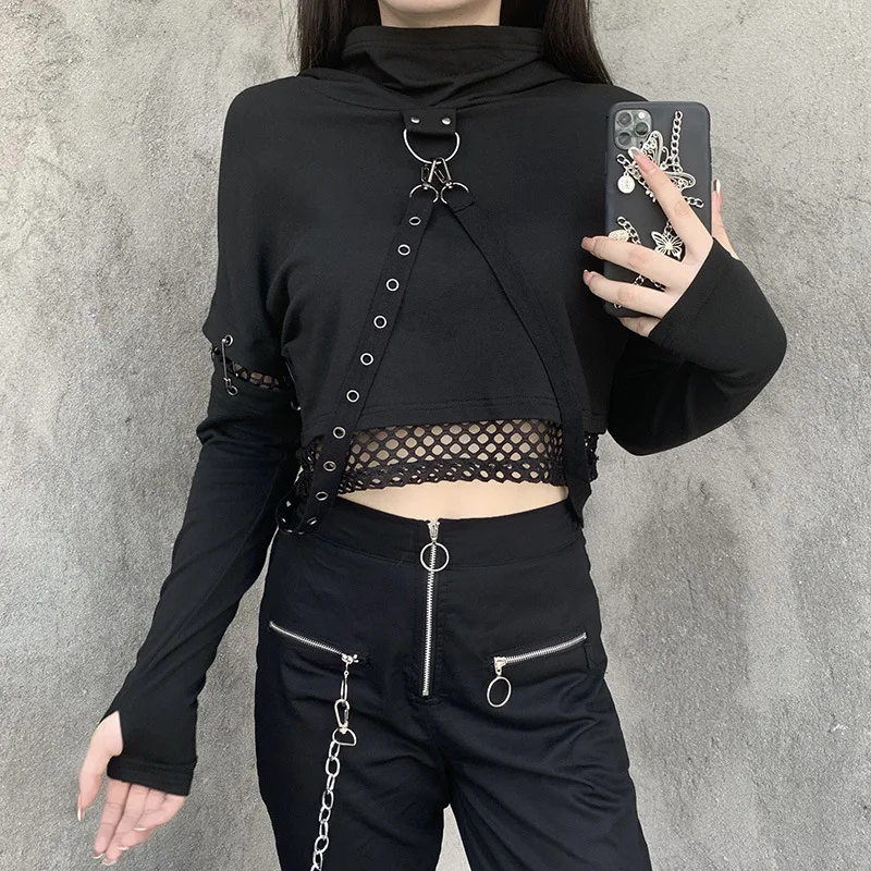 Сетчатая Толстовка Goth Dark в стиле панк с цепочкой, Свободный пул...