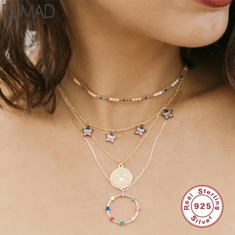 Romad ожерелья из стерлингового серебра 925 пробы Радужная жемчужина чокер кулон ожерелья для женщин ювелирные украшения для свадьбы колье W3