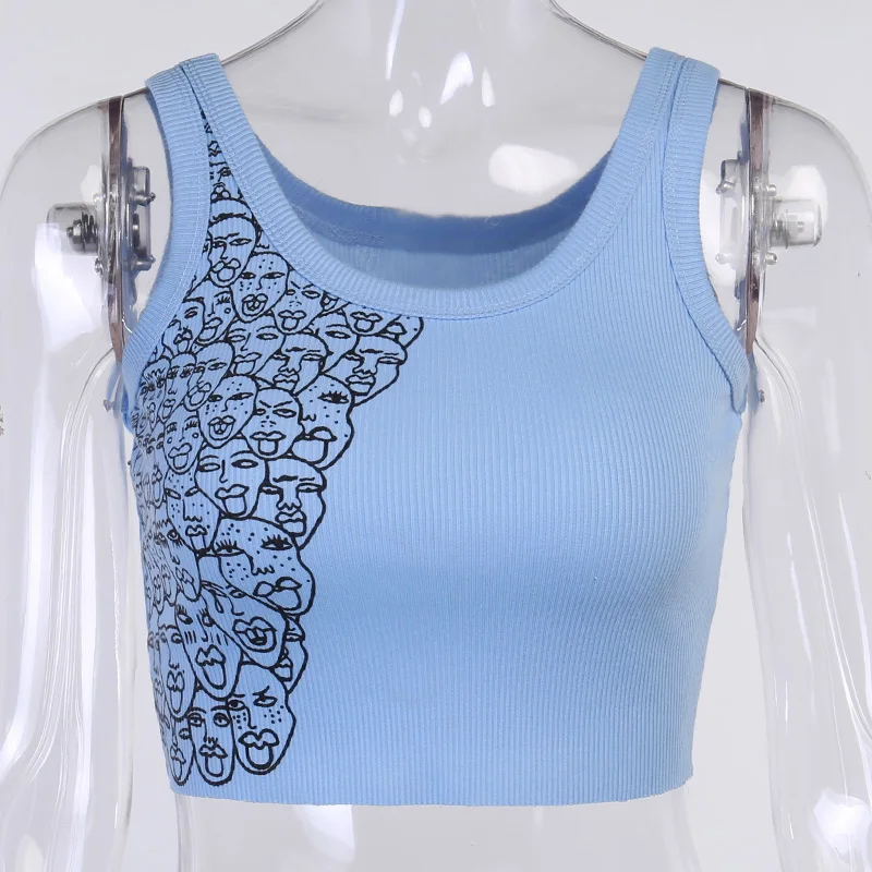 Топы с бретельками для женщин 2021 Летний Тонкий жилет без рукавов с модным принтом трикотажные укороченные топы пикантные повседневные рубашки женский Harajuku