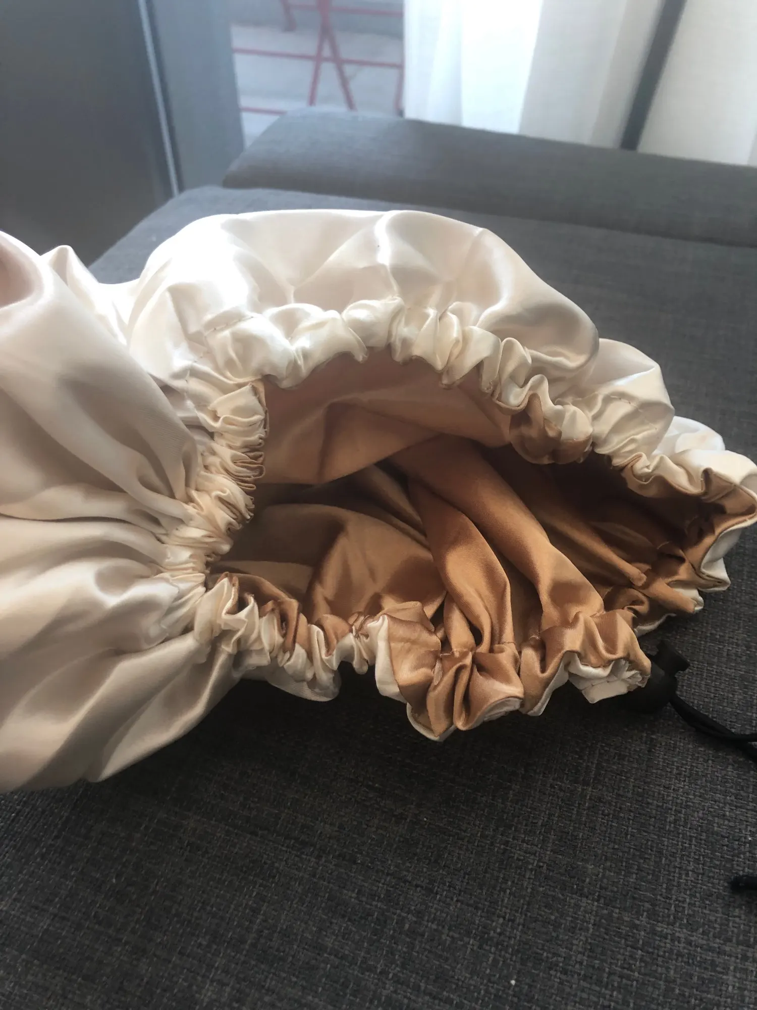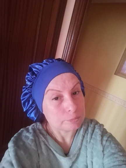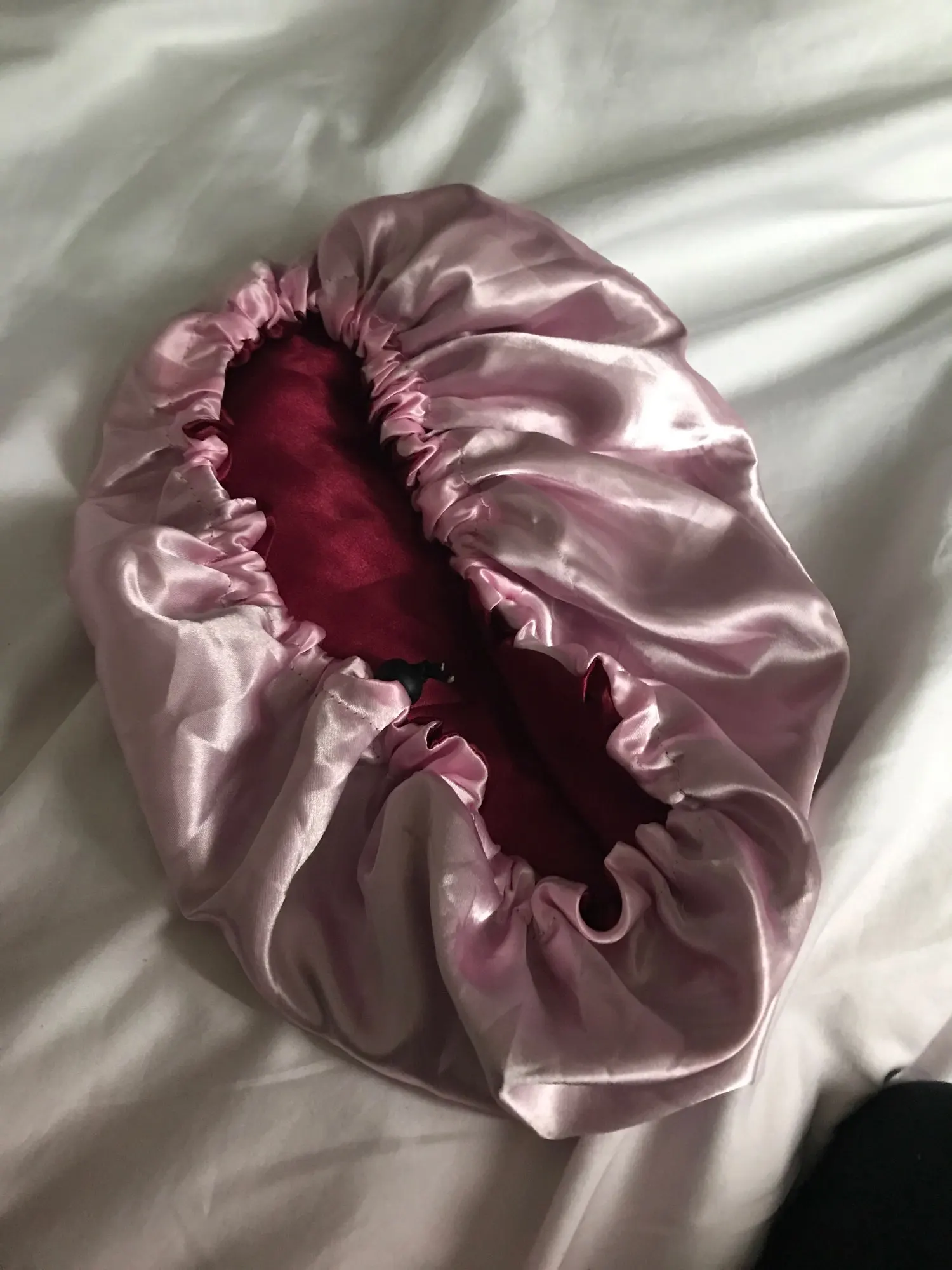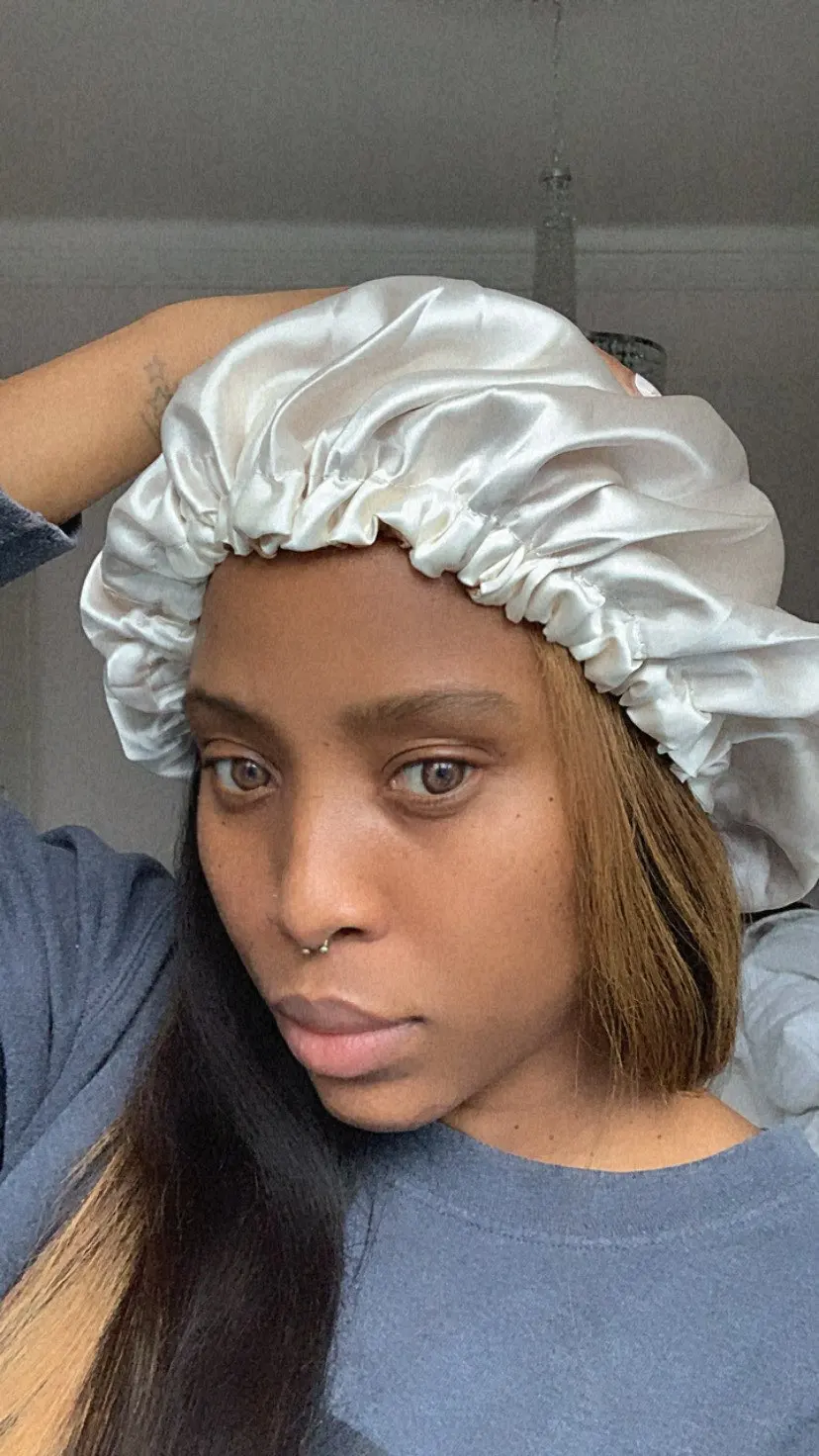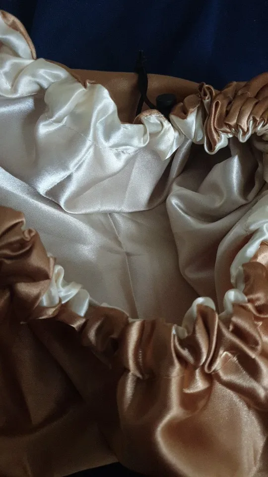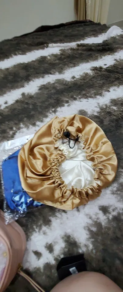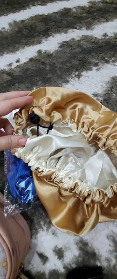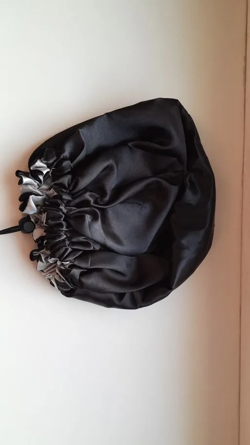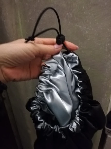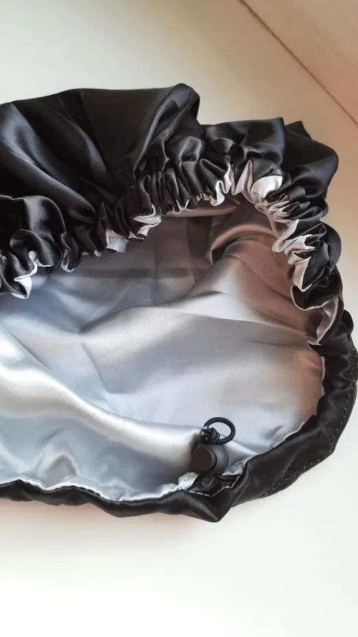 Отлично, пришел быстрее, чем расчетное время, я заказал из Канады. Обе стороны из атласа. Есть Регулируемая нить, которая точно подходит к вашей голове, и она достаточно большая для моих очень длинных и вьющихся волос.