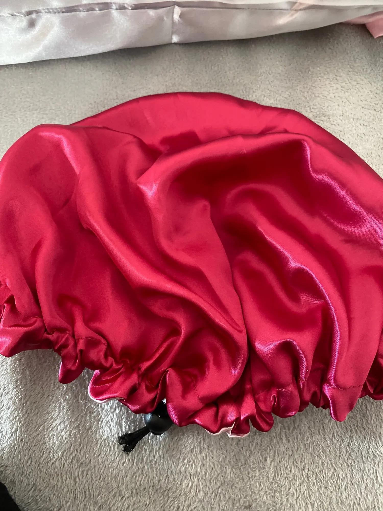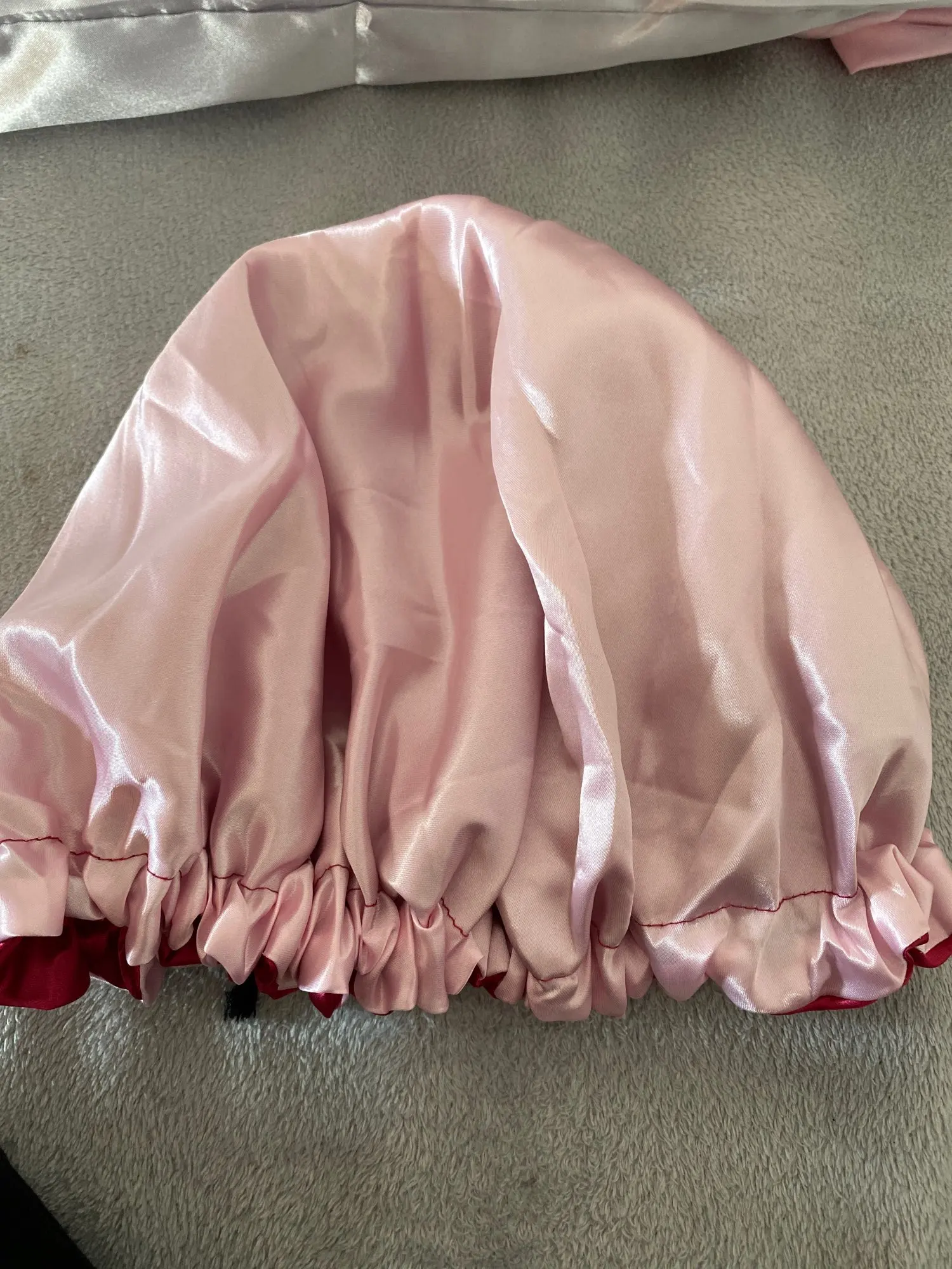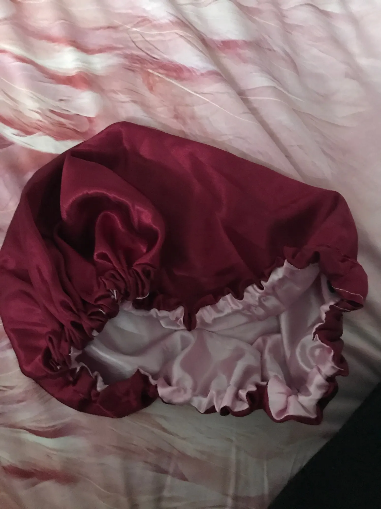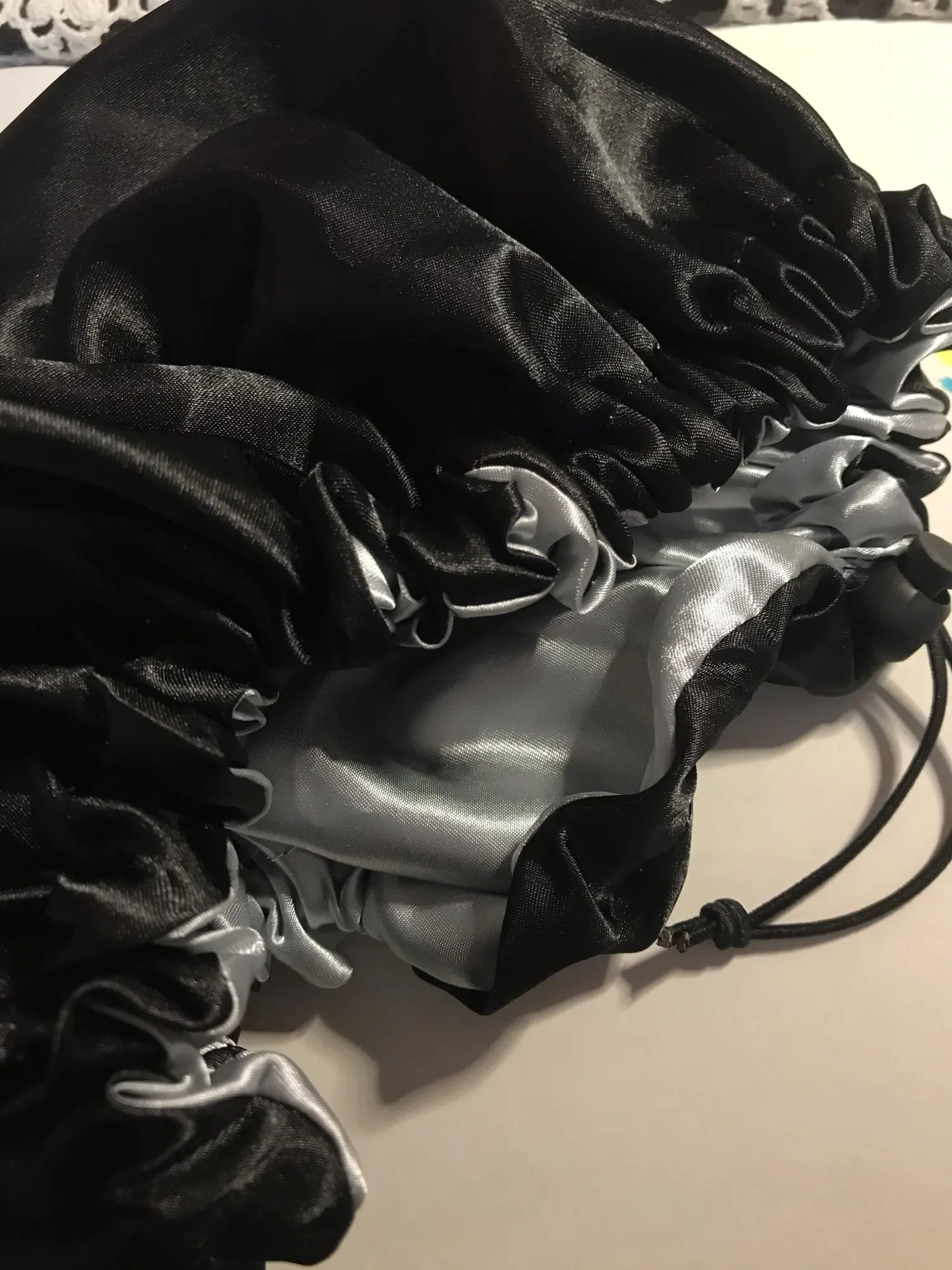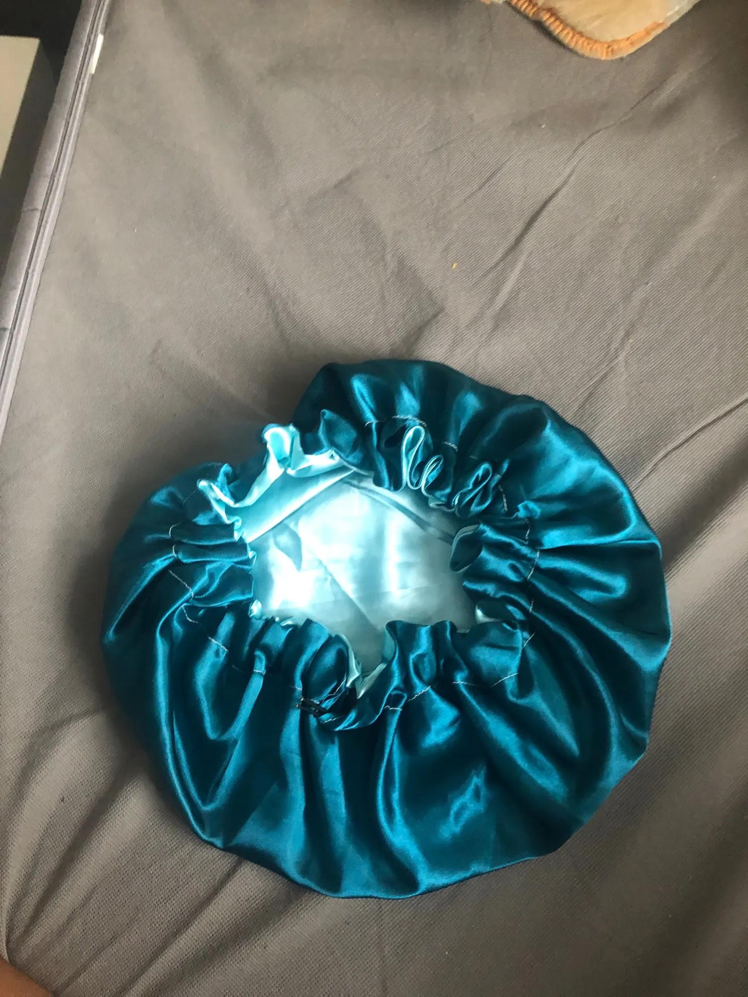 Отлично, пришел быстрее, чем расчетное время, я заказал из Канады. Обе стороны из атласа. Есть Регулируемая нить, которая точно подходит к вашей голове, и она достаточно большая для моих очень длинных и вьющихся волос.