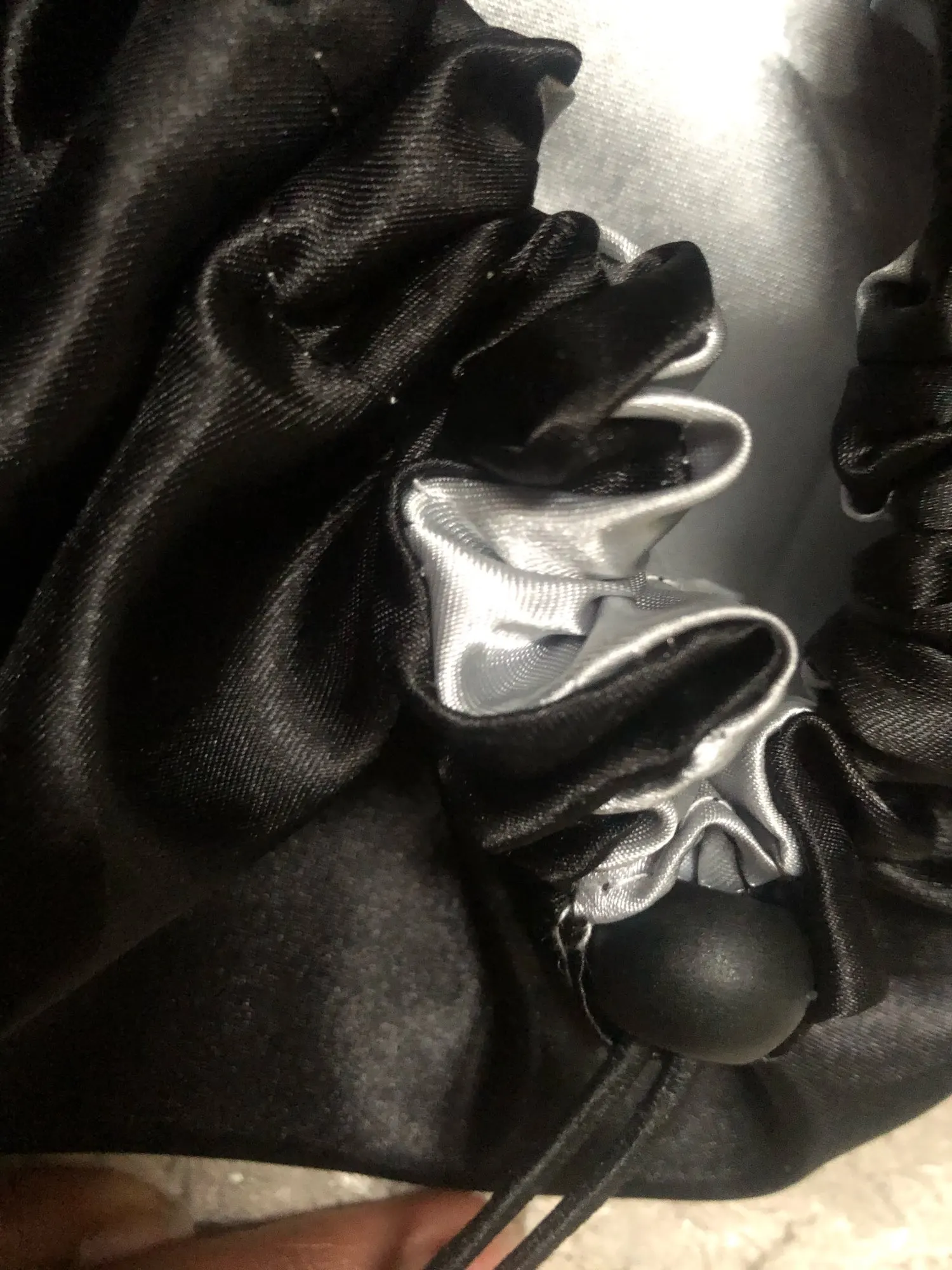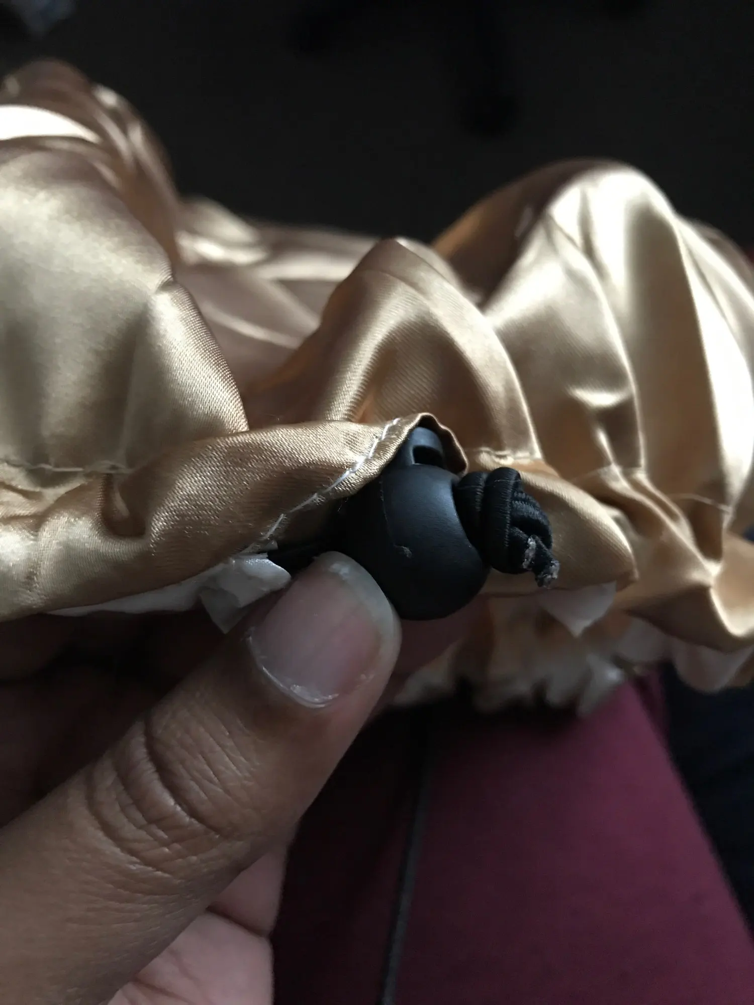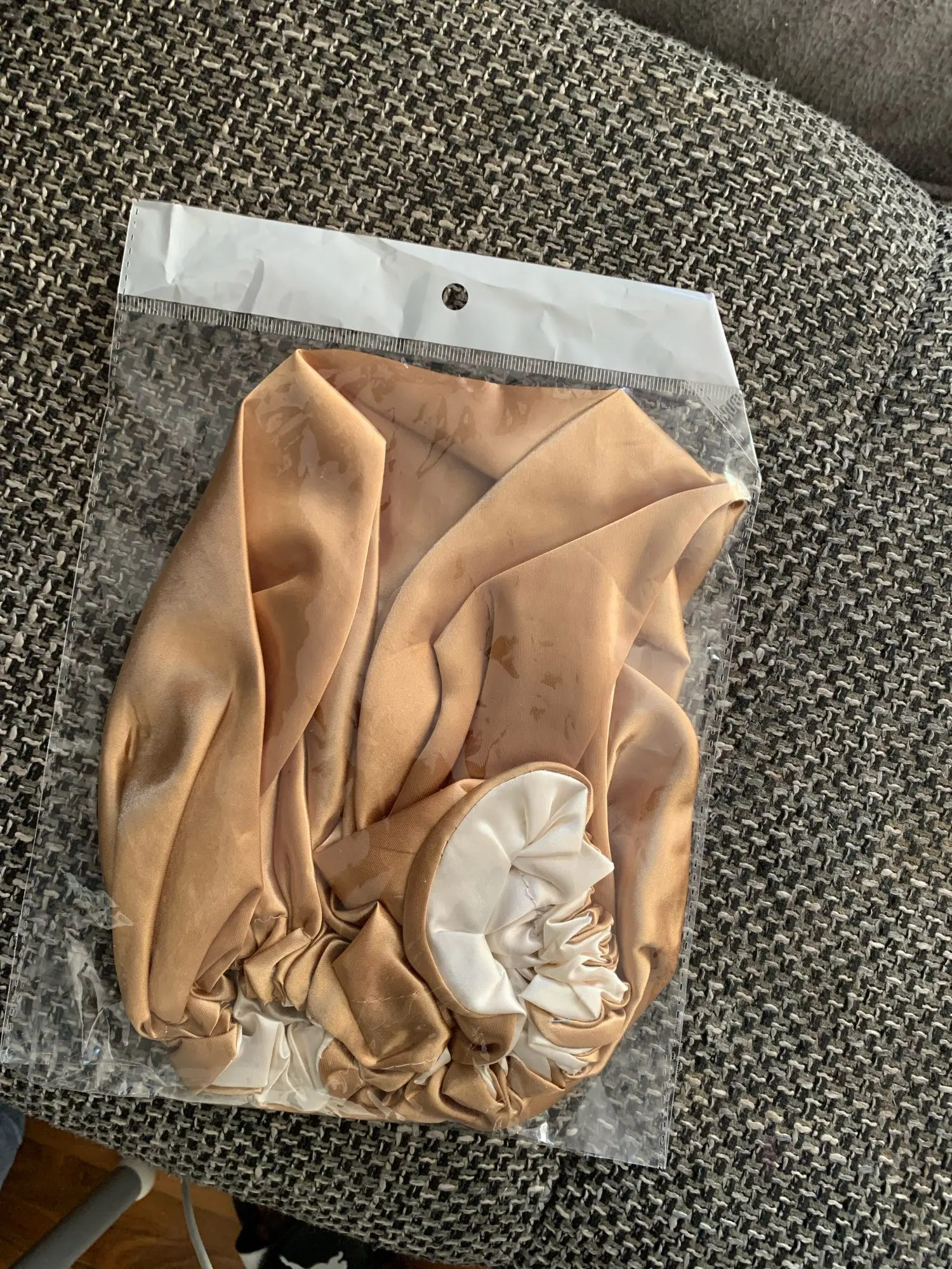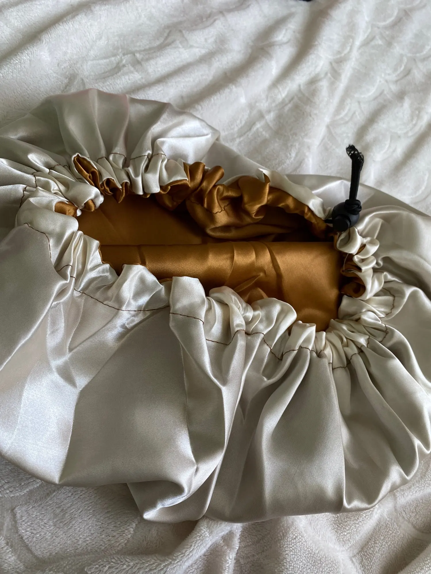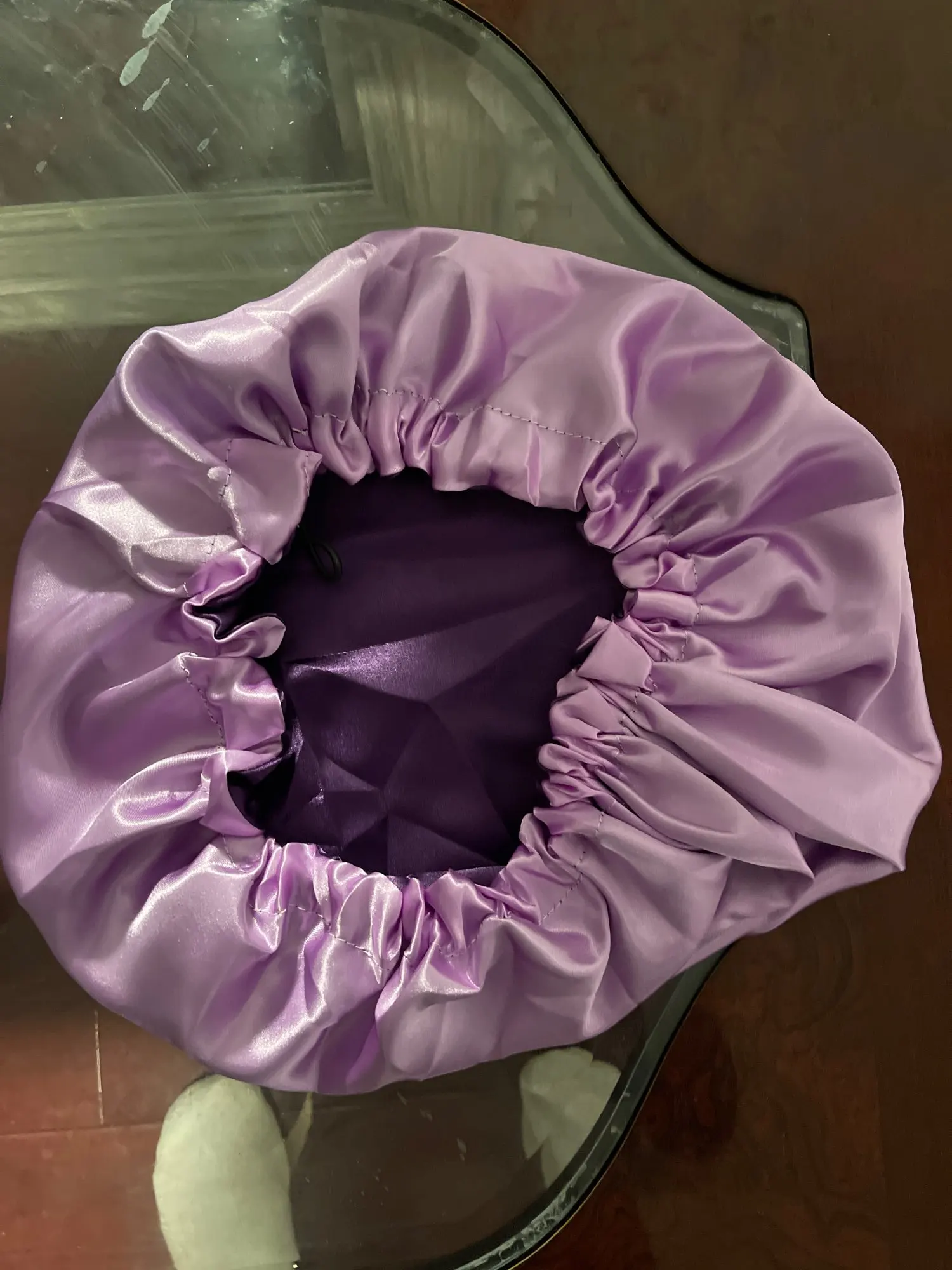 Отлично, пришел быстрее, чем расчетное время, я заказал из Канады. Обе стороны из атласа. Есть Регулируемая нить, которая точно подходит к вашей голове, и она достаточно большая для моих очень длинных и вьющихся волос.