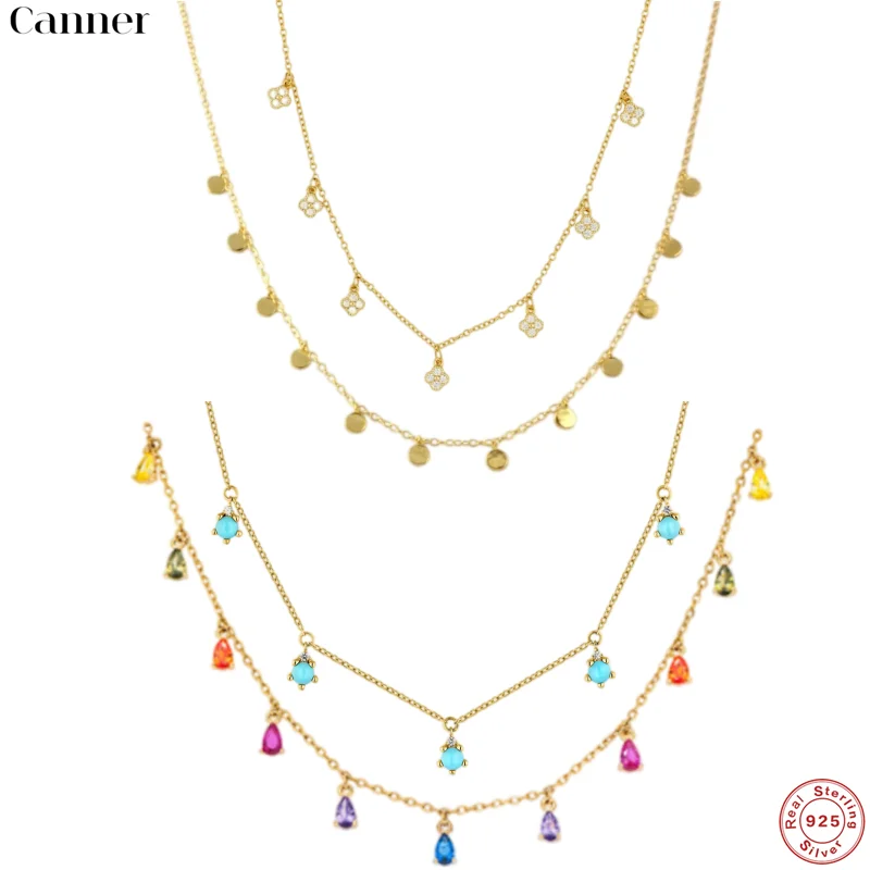 Женское колье-чокер Canner Stackable из стерлингового серебра 925 пробы с разноцветными пайетками, ювелирные украшения для свадьбы, W3