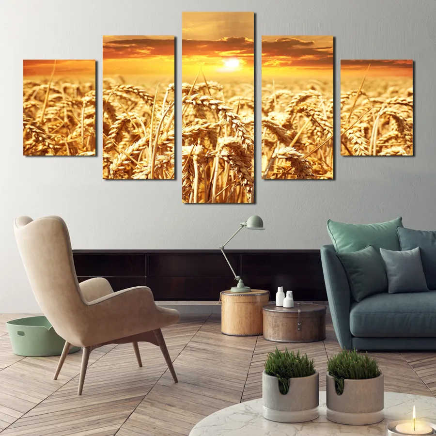 Фотография Сумерки урожая настенная живопись Золотой закат полный пшеничный красивый пейзаж Hd печать без рамки холст Декор плакат
