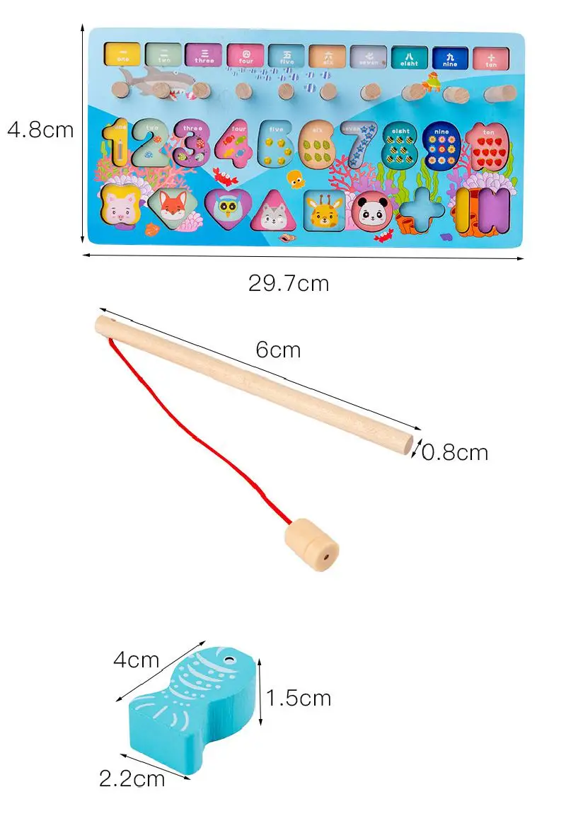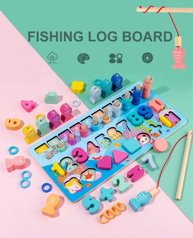 Деревянная логарифмическая доска Монтессори, магнитная рыболовная форма, когнитивный строительный блок, Детская развивающая игрушка