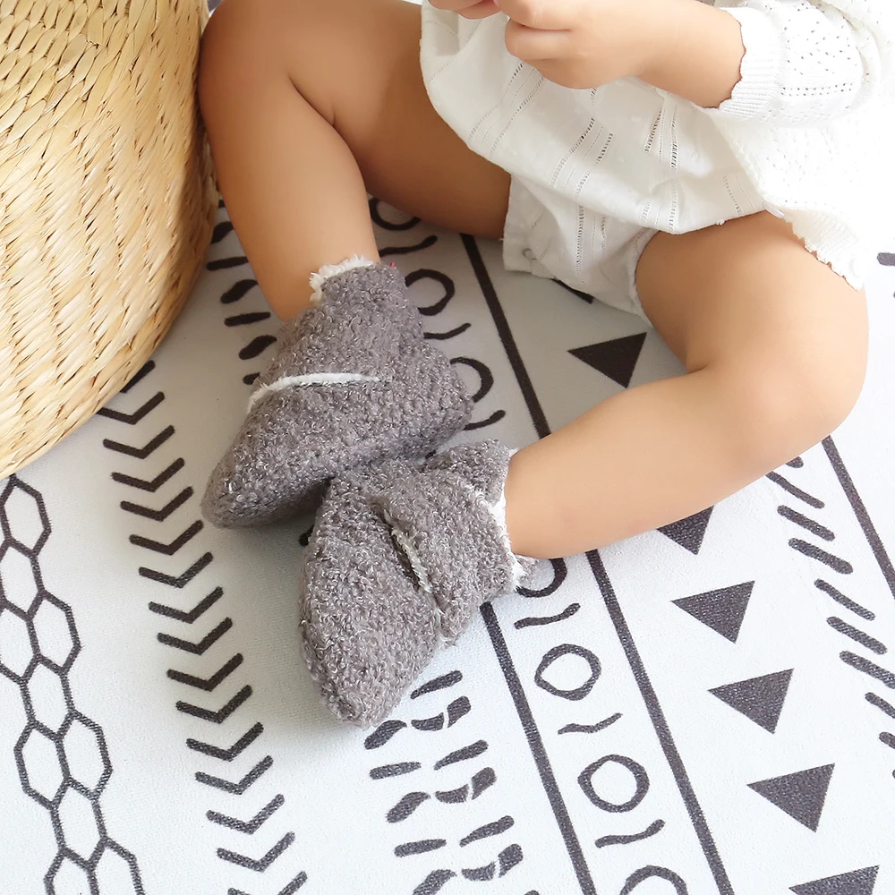 Флисовые пинетки удобные детские тапочки унисекс для младенцев; Обувь для кроватки с нескользящей подошвой для мальчиков и девочек
