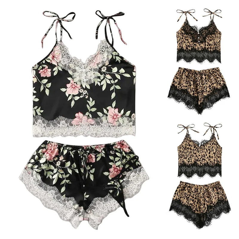 2020 комплект сексуальной пижамы на бретельках, ночное белье, кружевное нижнее белье с леопардовым принтом и шорты, пижамный комплект Bayan Gecelikler