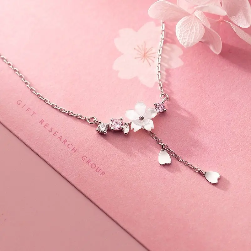 Ожерелье из серебра S925 пробы с подсветкой, роскошное Элегантное ожерелье из ракушек и цветов, комплект с красивым цветком и кисточкой, цепочка до ключиц с кристаллами для женщин