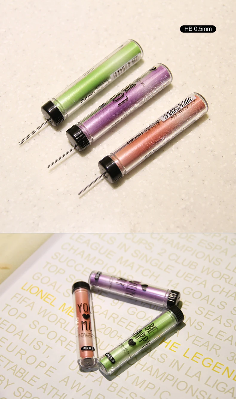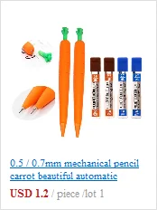 Я получил 5 морковных механических карандашей. Все они были 0,5 мм, как указано. Пришел только с одним свинцом, поэтому я рекомендую приобрести несколько стержней, чтобы пойти вместе с ним.
