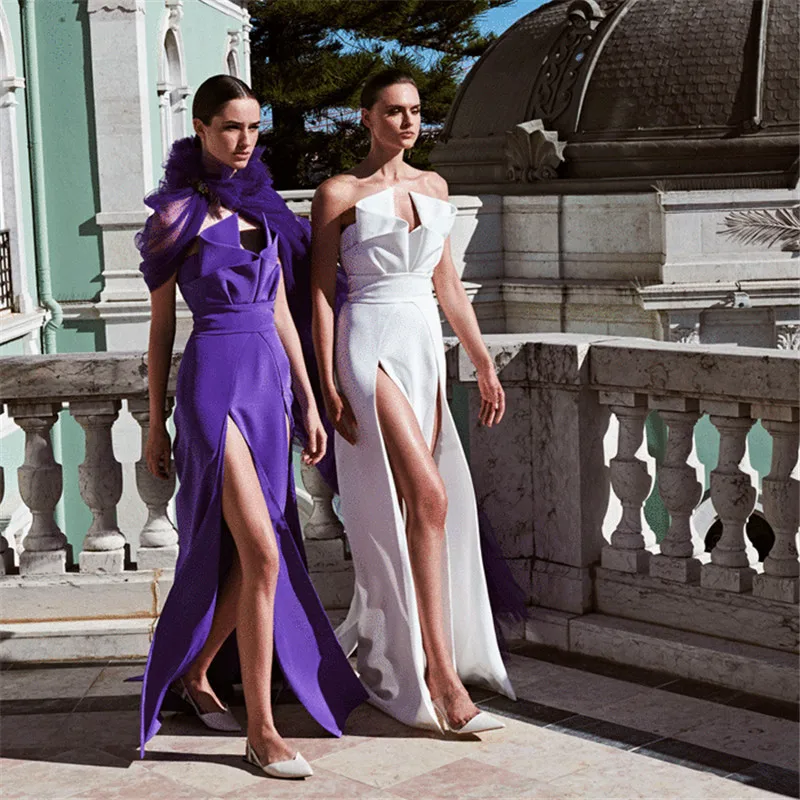 Женский Облегающий комбинезон знаменитости, длинное платье для выпускного вечера, привлекательное белое платье до щиколотки без бретелек, Фиолетовый комбинезон, осень 2021