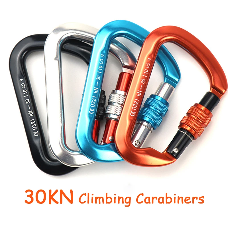 D-образный альпинистский карабин 30 кН, 4 шт., защитная Пряжка, винтовые ворота, главный замок