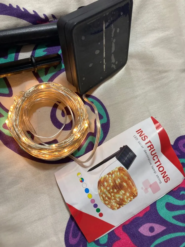 Брал 30 метров с теплым белым цветом, все работает, есть несколько режимов, датчик освещенности функционирует, подзарядка от солнца в дневное время тоже, внутри коробки с аккумулятором есть место еще для двух батареек, при желании можно добавить и получится всего 3 аккумулятора.