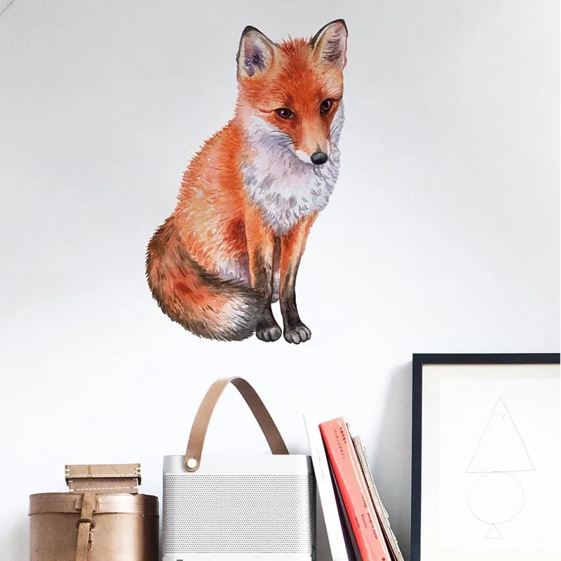 Настенная Наклейка с рисунком лисы, домашнее украшение стен, декор для гостиной, Креативные обои с животными, художественные наклейки, самоклеящаяся наклейка s