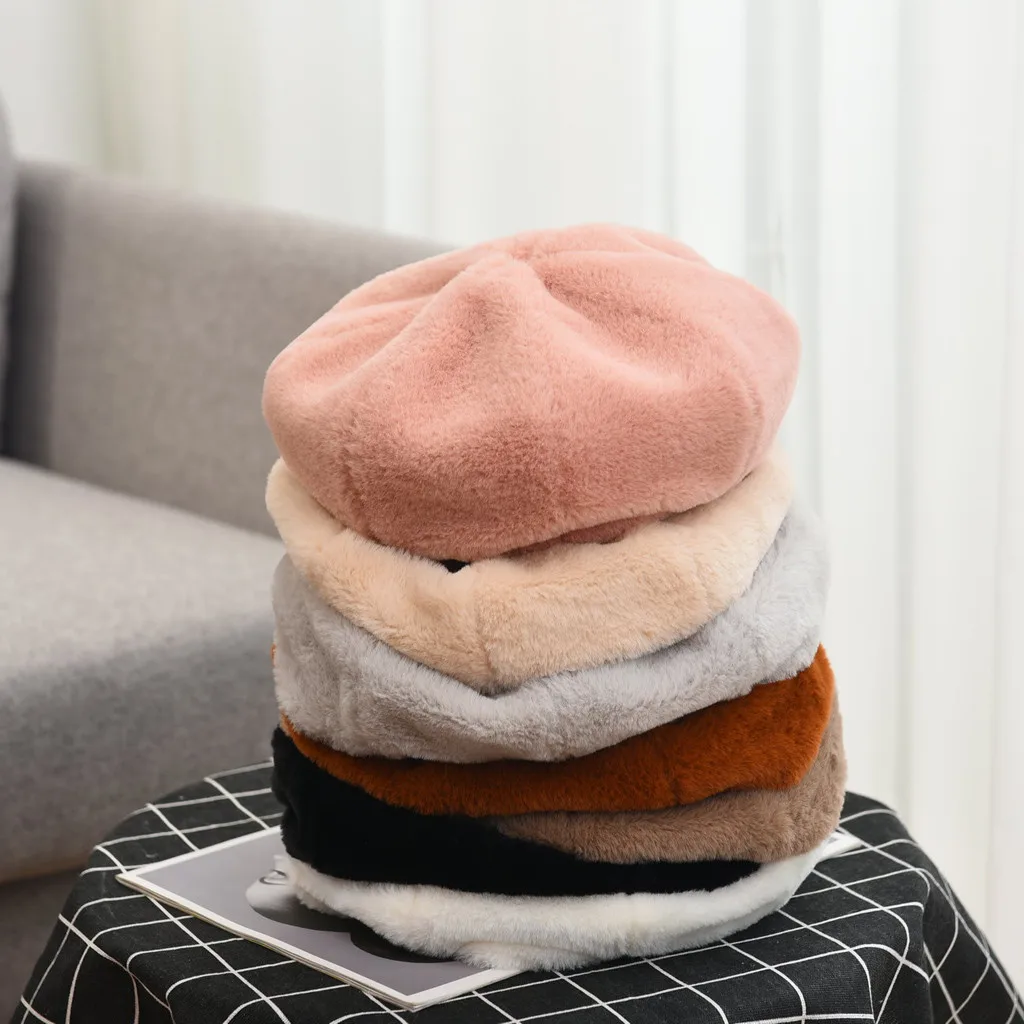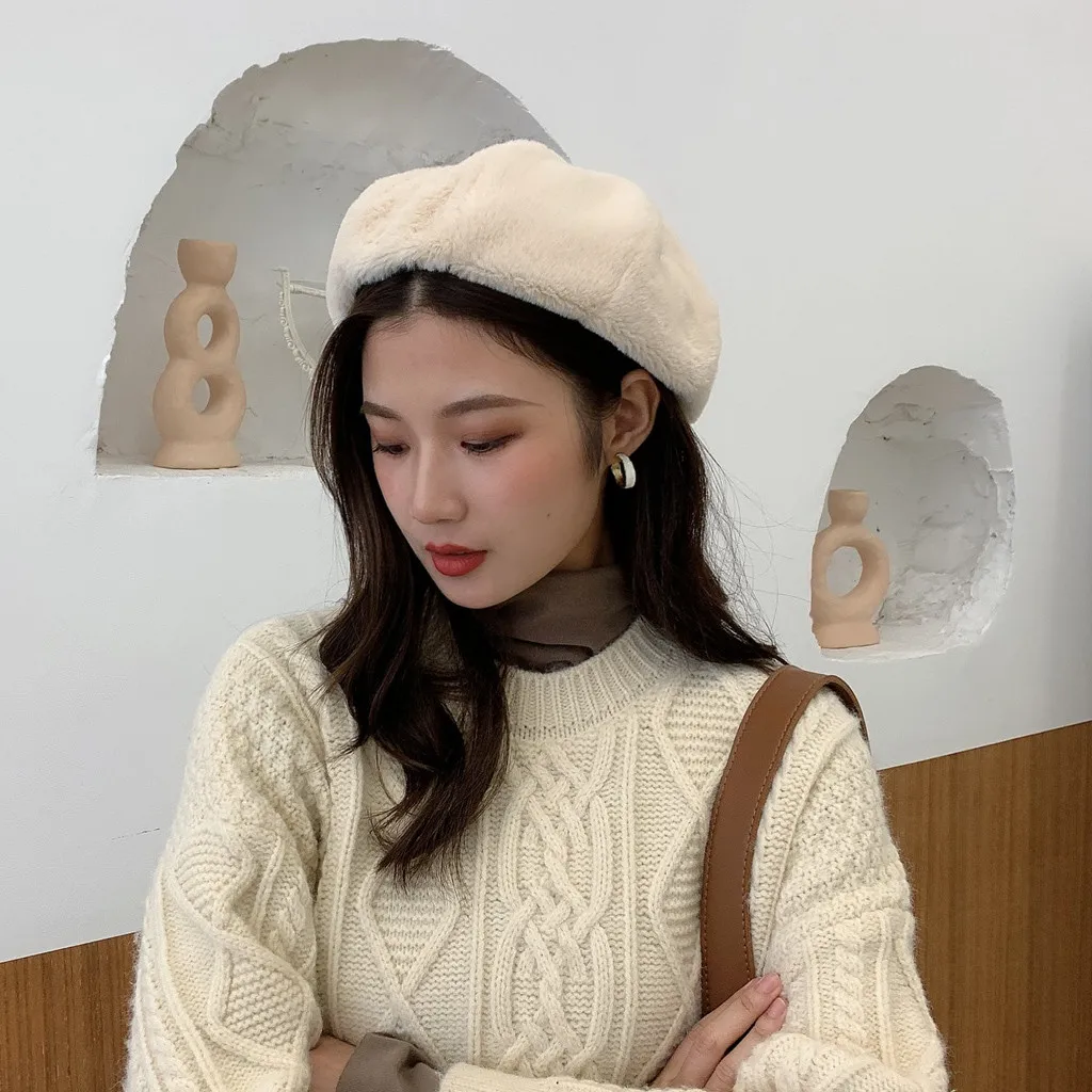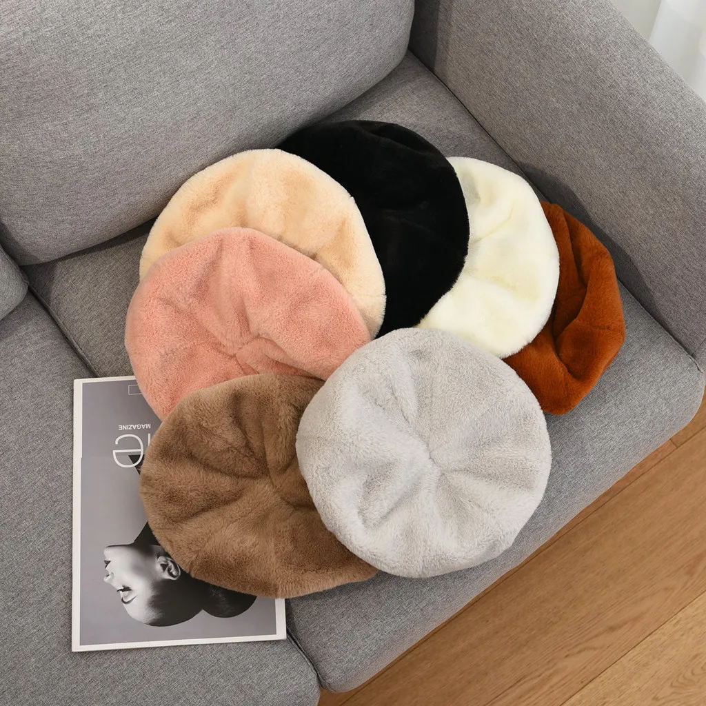 Зимний теплый берет из искусственной шерсти, женский элегантный однотонный берет, милые и теплые шапки, охотничьи береты, шапка Se6