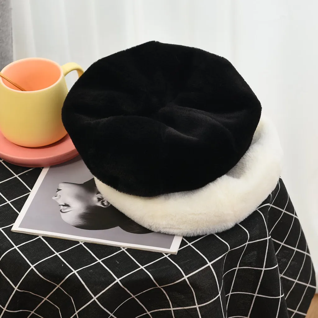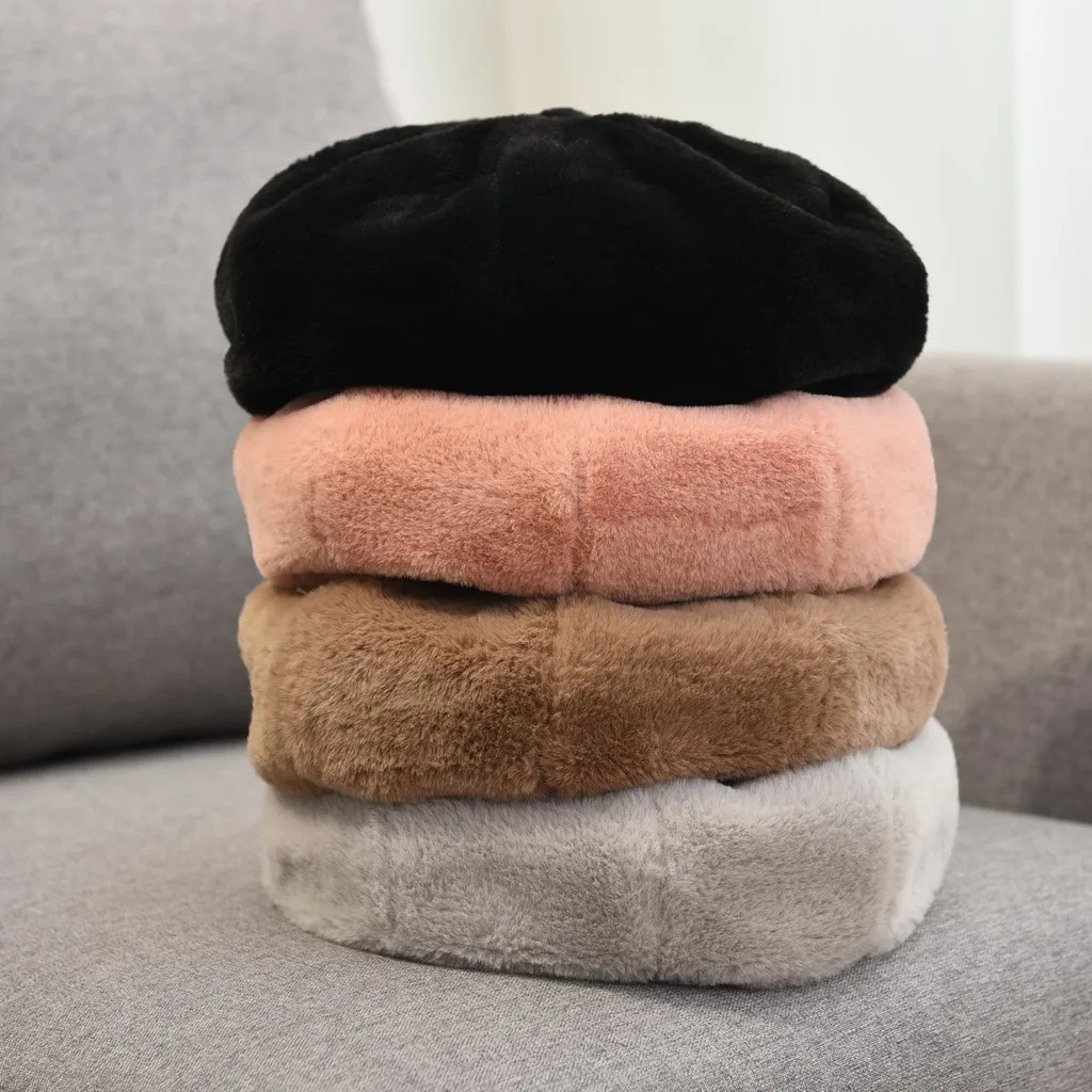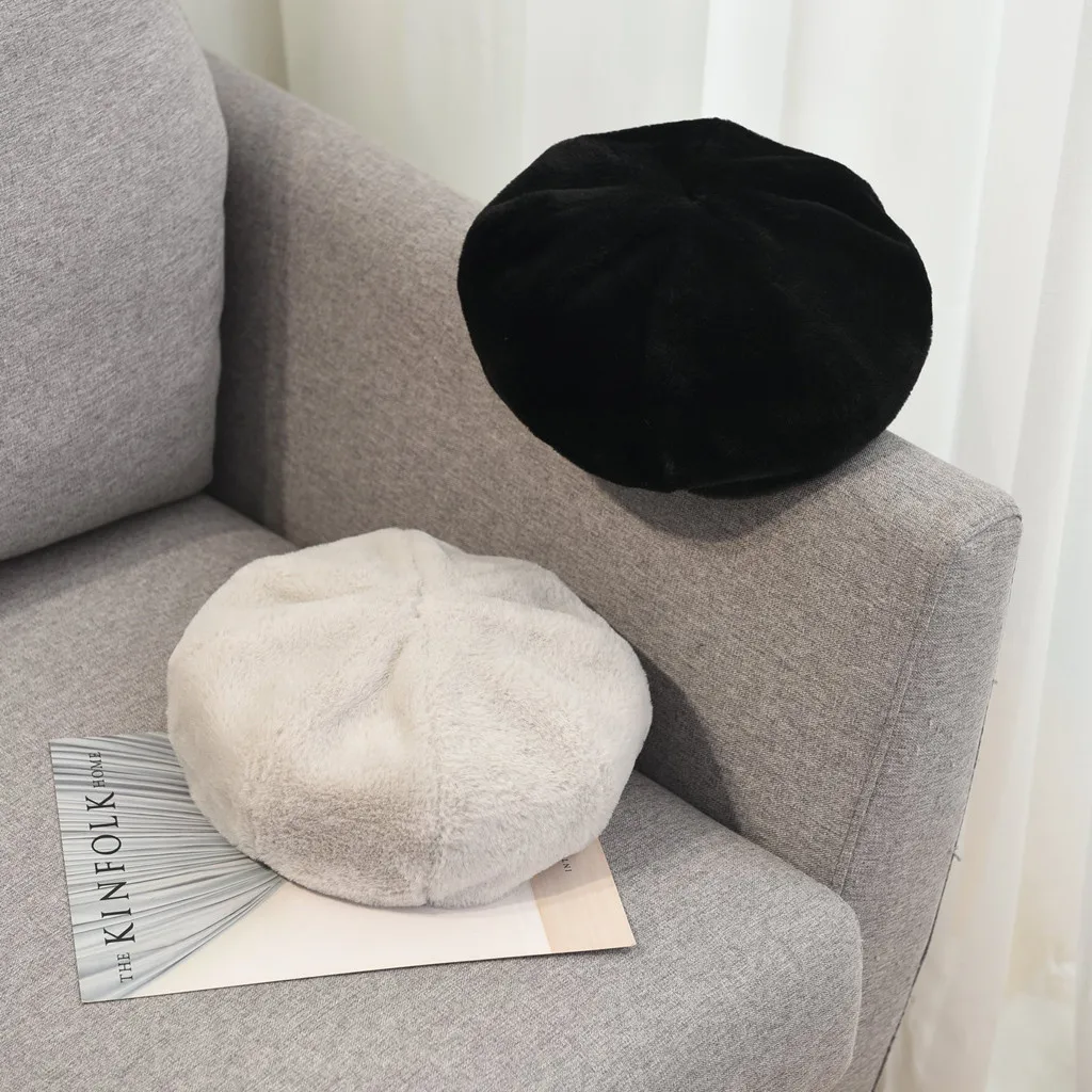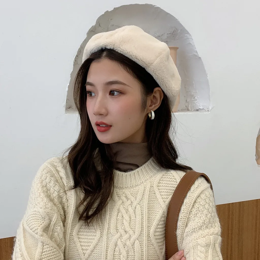 Зимний теплый берет из искусственной шерсти, женский элегантный однотонный берет, милые и теплые шапки, охотничьи береты, шапка Se6