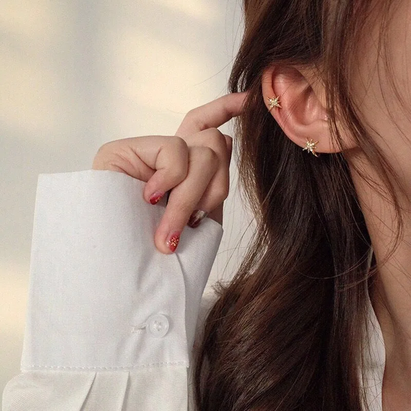 Золотые серьги-клипсы в виде гексаграммы, корейские серьги на Козелок, не серьги в стиле пирсинга, модные украшения 2020
