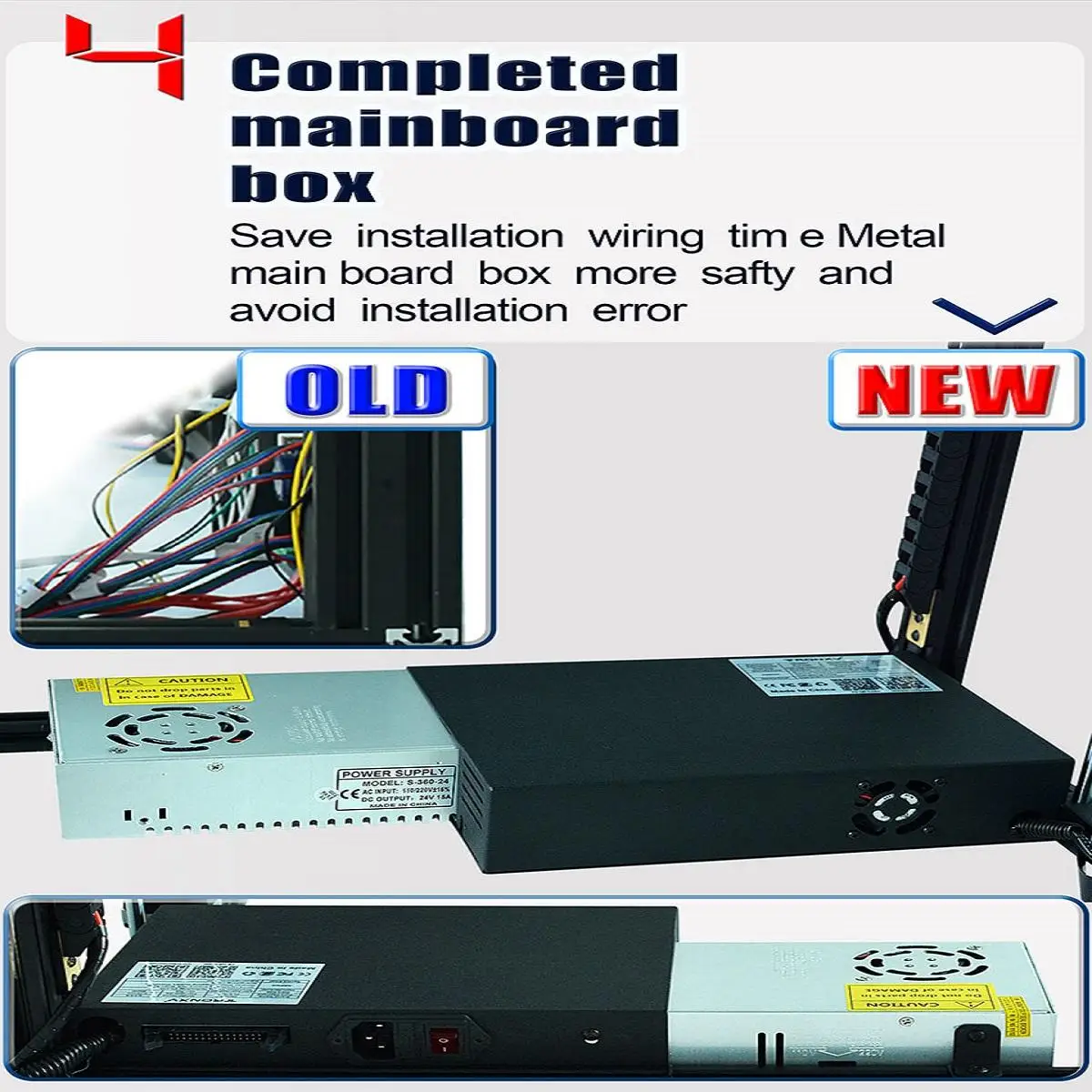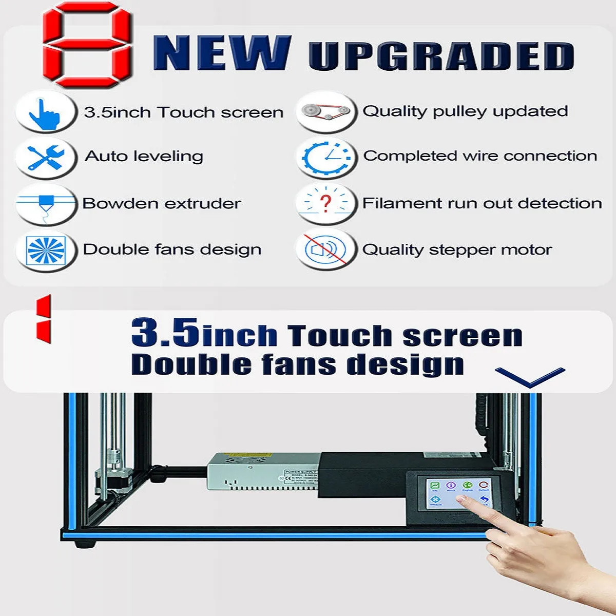 Особенности:-С большим размером печати 400*400*400 мм-С сенсорным экраном 3,5 дюйма, дизайн с двумя вентиляторами-С Экструдером Bowden, высокая точность для обеспечения лучшего качества печати-С двойным вентилятором сопла, супер теплоотдача-С улучшенным корпусом материнской платы, повышенной безопасностью и избежанием ошибок установки-С улучшенным пульсом, низким уровнем шума и стабильным движением-С обнаружением разрыва нити-С автоматическим выравниванием-Модернизированный шаговый двигатель и ремень, более стабильный и длительный срок службыОписание: