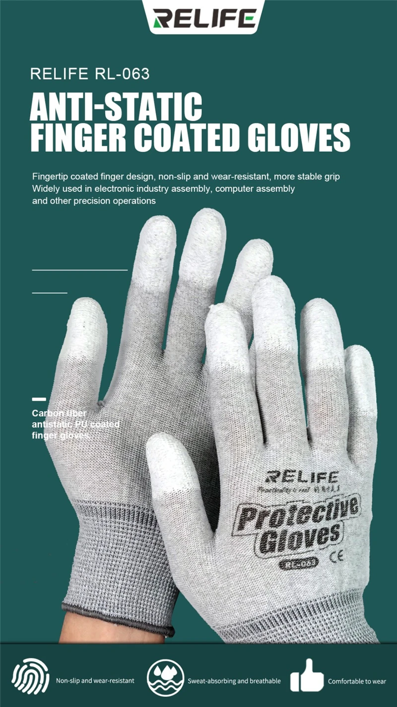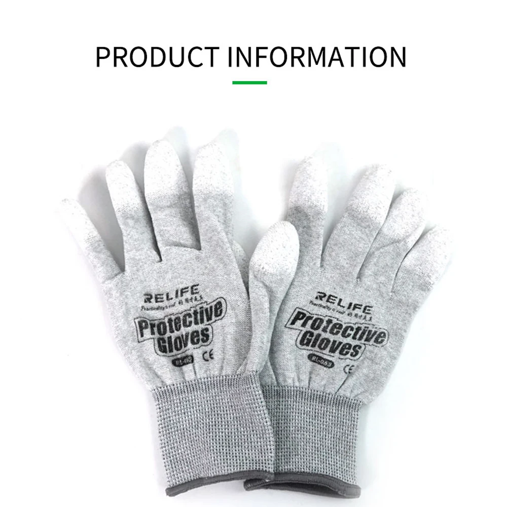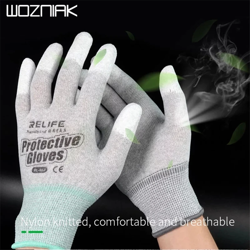 Перчатки RELIFE RL-063 антистатические, противоскользящие, с антистатическим покрытием, для электронных устройств с полиуретановым покрытием, с защитой пальцев, для компьютера, ремонт телефонов