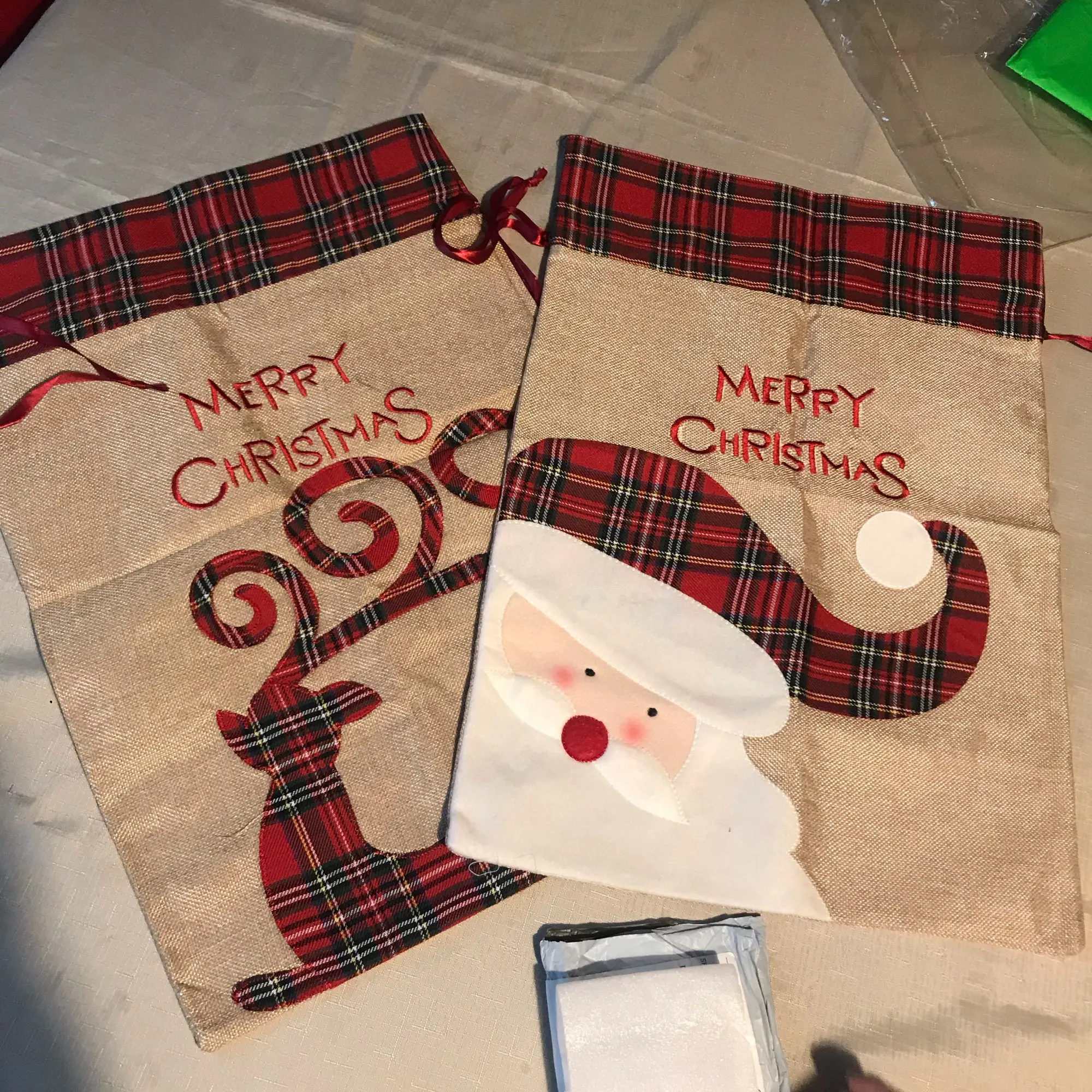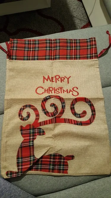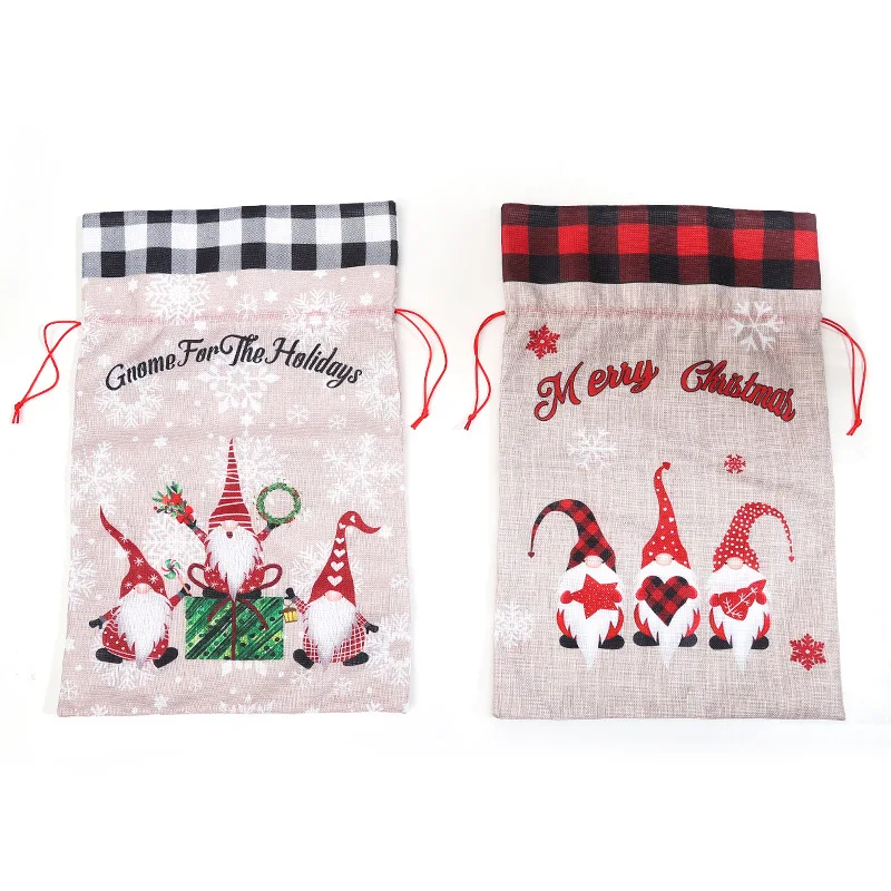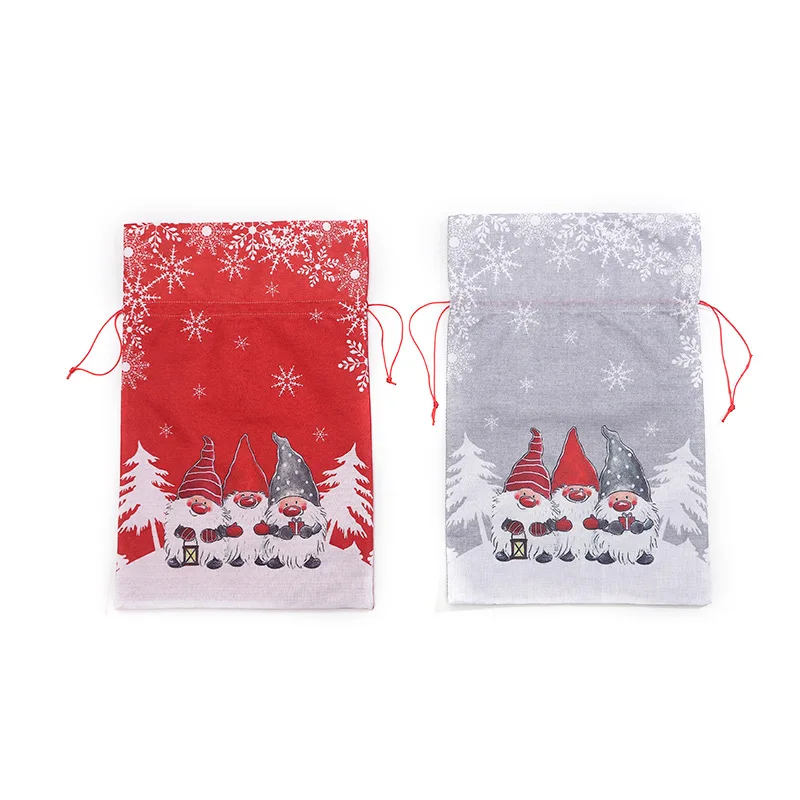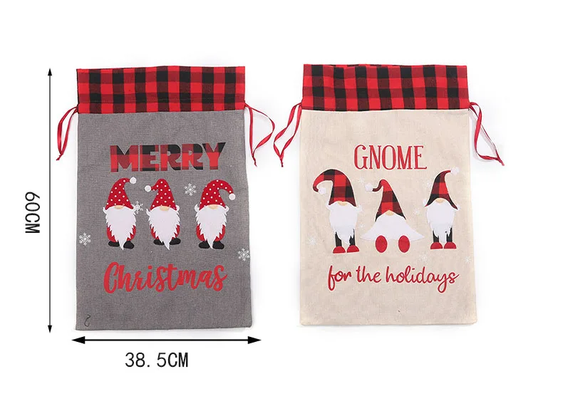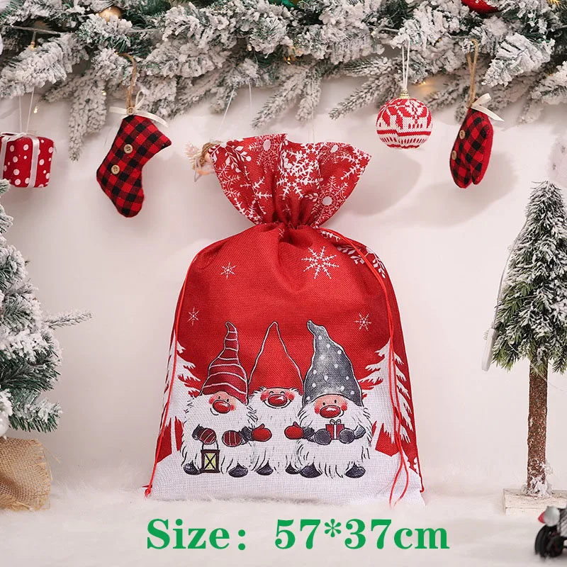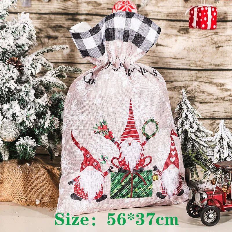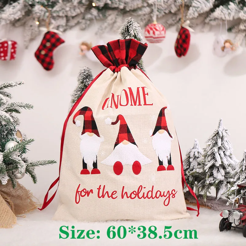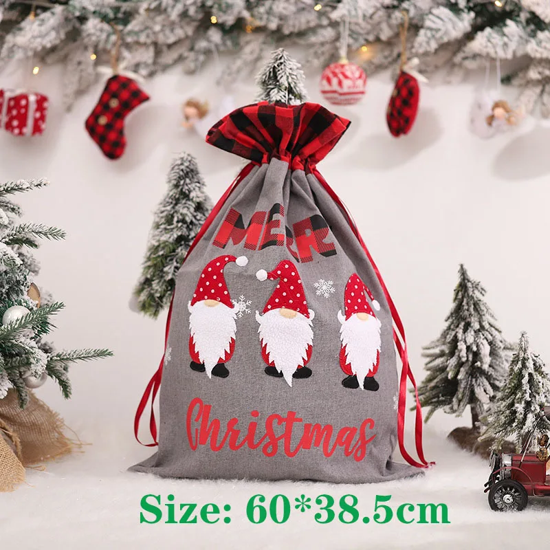 Рождественский подарок, большая сумка, милый Рождественский льняной тоут, решетчатый мешок с боковым шнурком и кармашком, подарок для детей