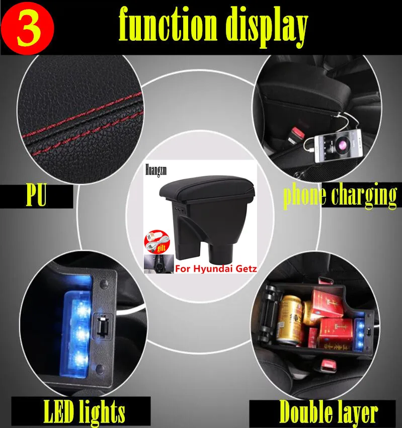 Подлокотник для Hyundai Getz, универсальный двухслойный центральный подлокотник с 3USB-портами