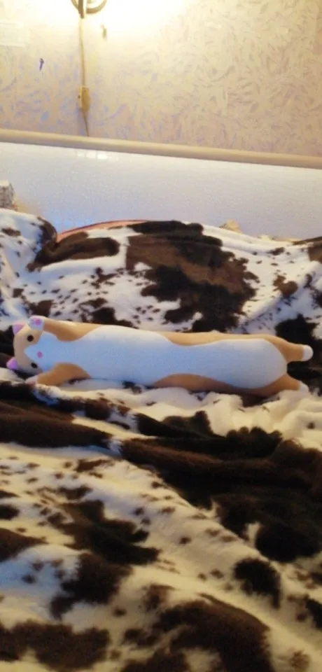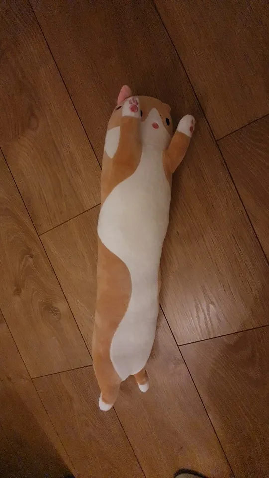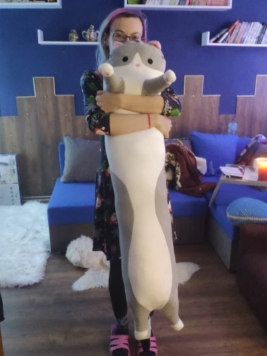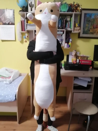 Ожидала, что кот будет толще и можно будет использовать его как подушку, а по факту это полметровая плюшевая сосиска толщиной с руку. материал очень мягкий, сзади на голове есть молния, за 350 рублей - шикарная игрушка
