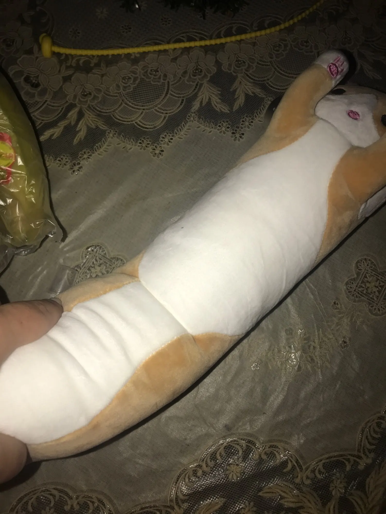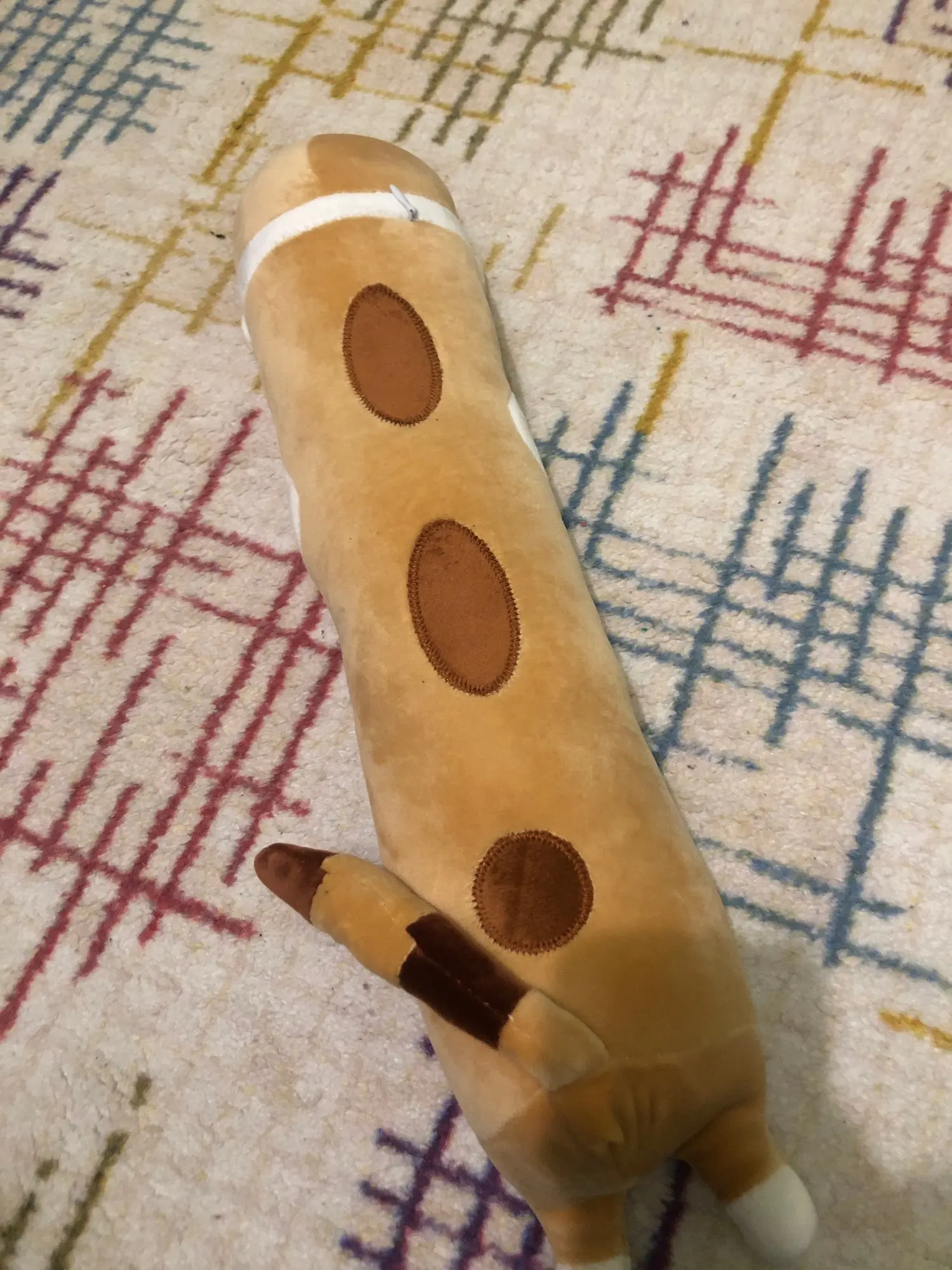 Он пришел довольно быстро. Выглядит немного странно, не совсем как на фото. Но для обнимашек пойдет. Нитки немного торчат. Не знаю как его только теперь постирать, чтобы набивка не испортилась