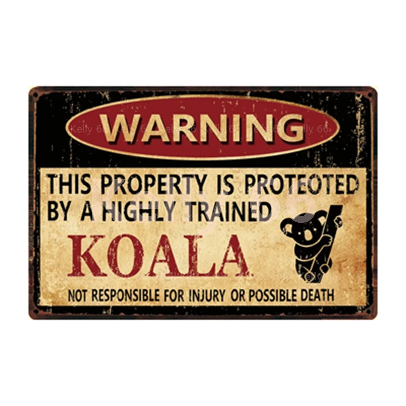 Kelly66 Предупреждение коала кролик со змеиным рисунком цыплят слон медведь металлический знак домашний Декор Бар настенная живопись 20*30 см Размеры Dy151
