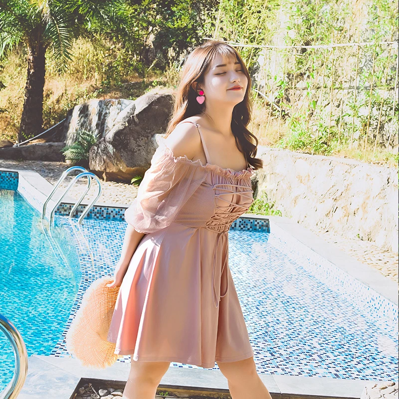 -- Купальник однотонного цвета, Модный с открытыми плечами;
