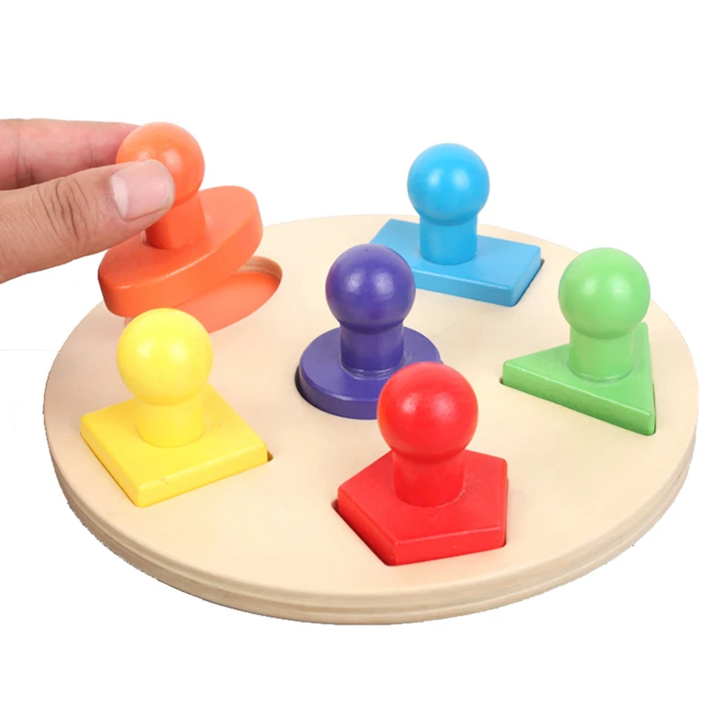 Деревянные красочные детские ногти Монтессори, ручной захват, геометрическая форма, доска, игрушки для детей, цвета, Форма s, обучение для детей