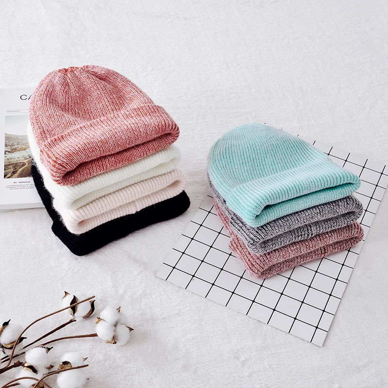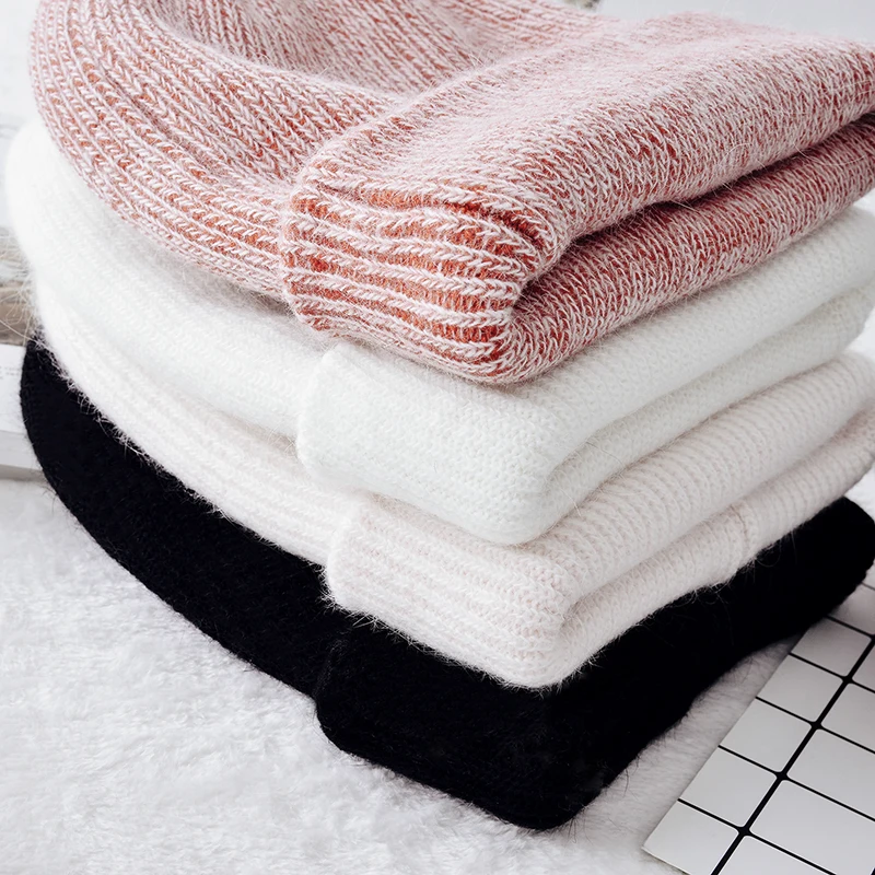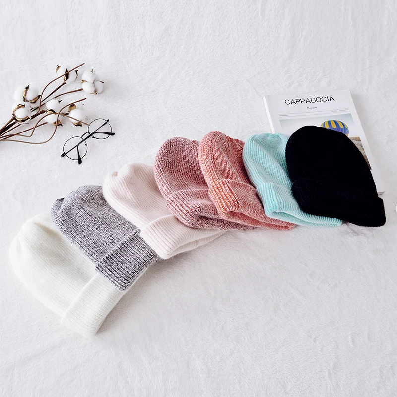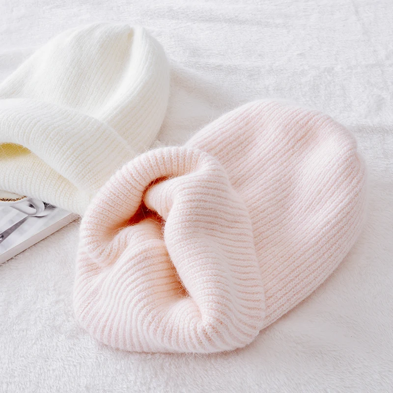 Простые зимние шапочки из кроличьего меха, облегающие шапочки, тепл...