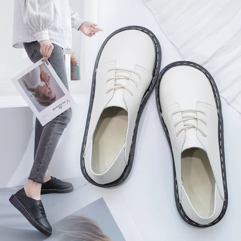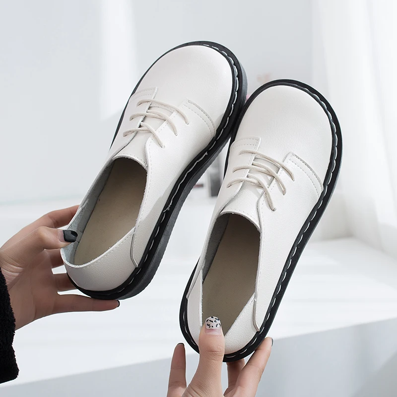 2020 осенние женские туфли-оксфорды кожаные туфли на платформе со шнуровкой Прошитые туфли Лолиты повседневные Черные Туфли с круглым носком в стиле ретро 8777N