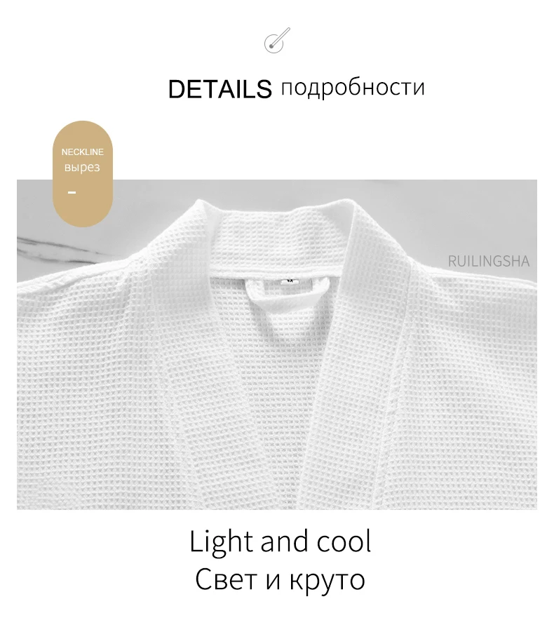 Халат-кимоно махровый унисекс, легкий банный халат с вафельным покр...