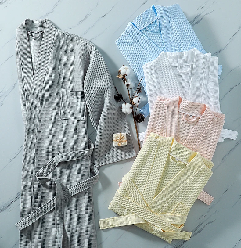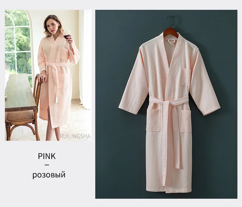 Халат-кимоно мужскойженский из 100% хлопка, длинный плотный впитывающий махровый банный халат, легкая вафельная одежда для сна, одежда для сна