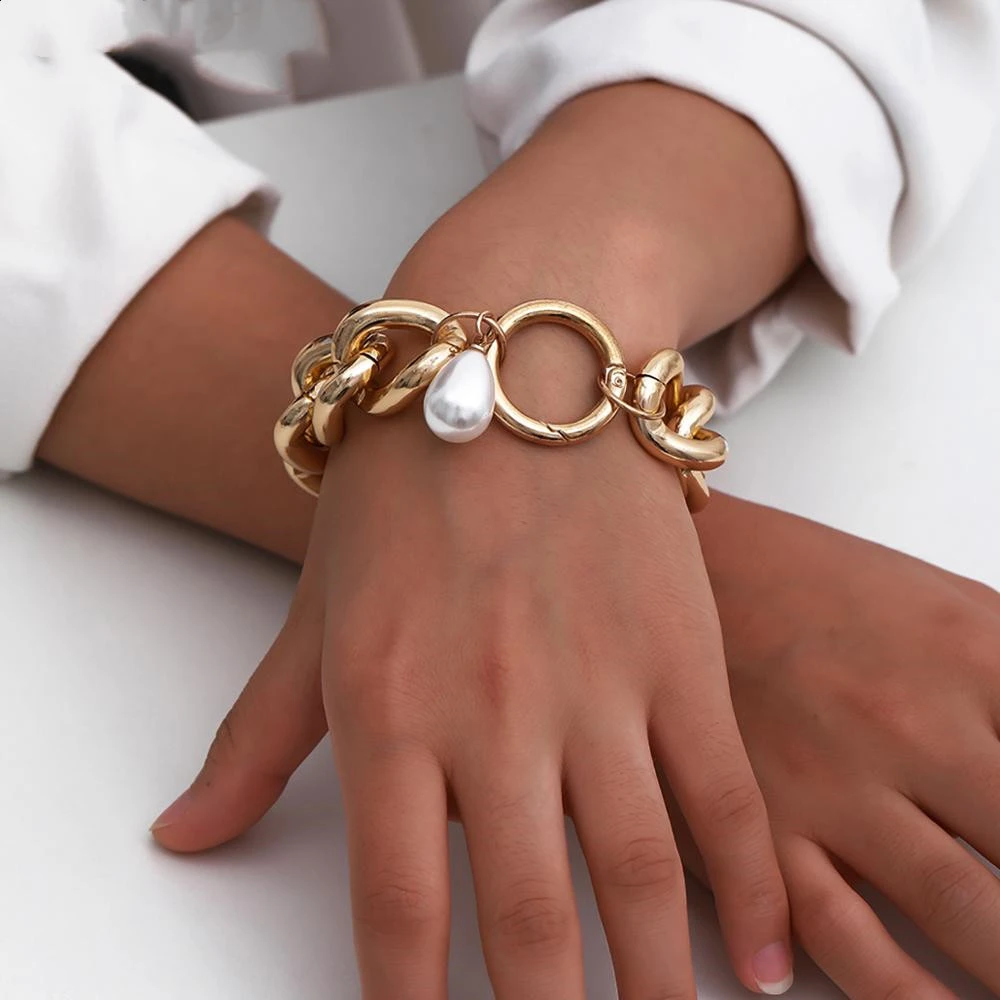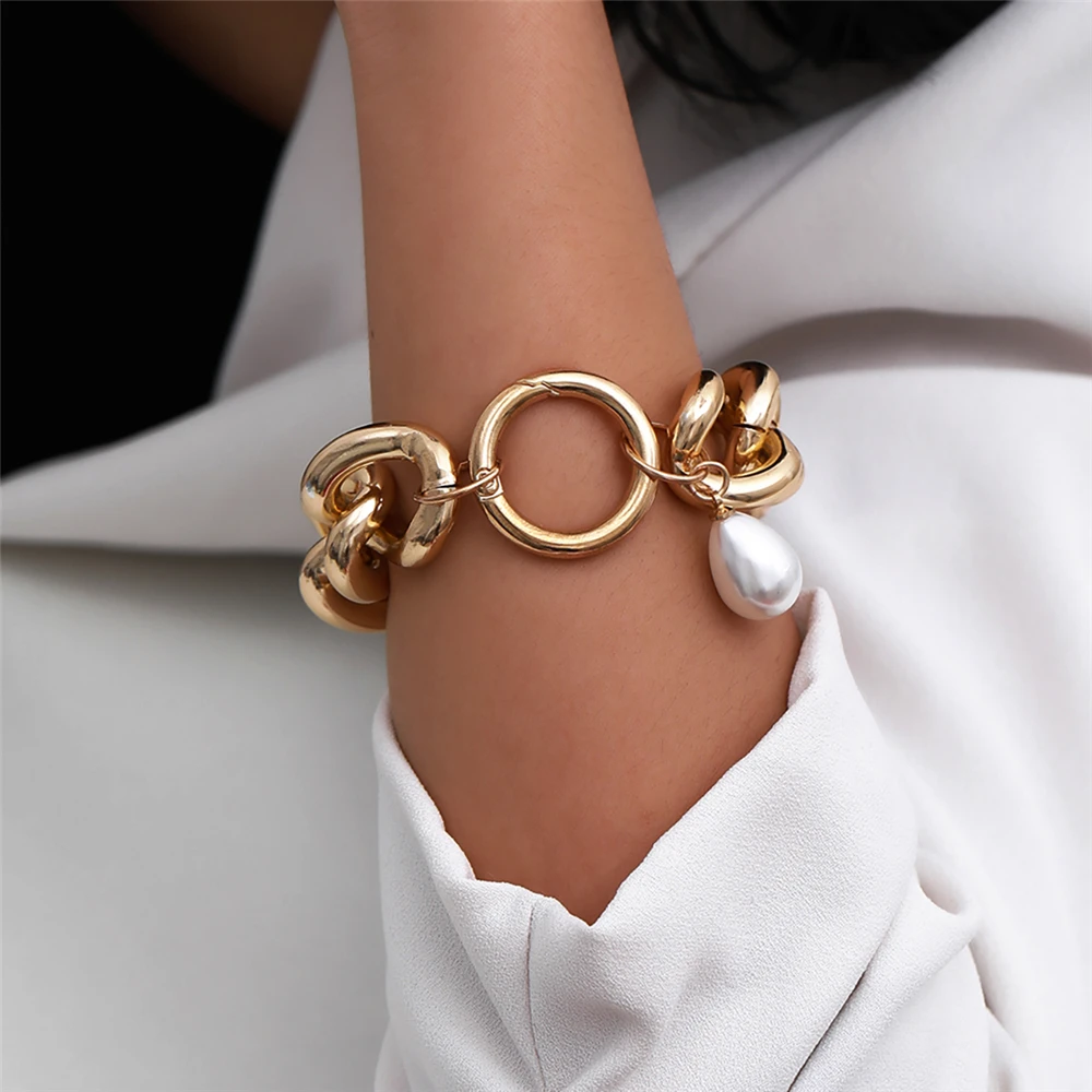 Женский большой браслет с подвеской в виде капли из искусственного жемчуга, мужской браслет в стиле хип-хоп, тяжелый металл, очаровательный браслет, ювелирный подарок