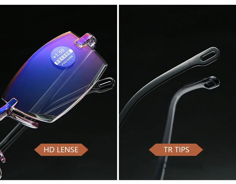 Очки для чтения без оправы для мужчин и женщин, от + 1,0 до + 4,0, ...
