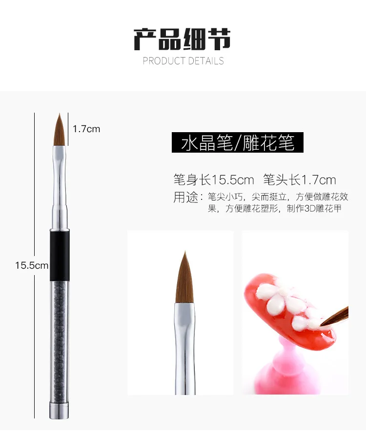 Кисть для ногтей, 1 шт., для стразы, акриловая ручка, для резьбы, д...