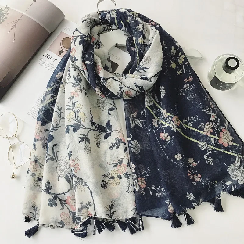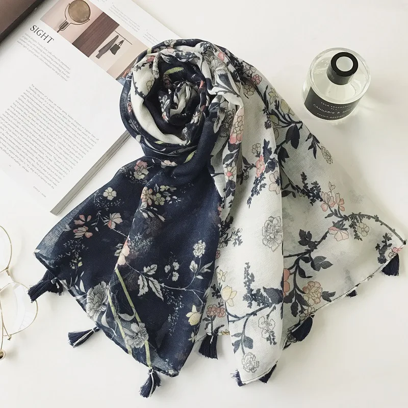 2021 роскошный фирменный лоскутный шарф из вискозы с цветочным принтом и кисточками, женские шали и палантин с принтом, мусульманский хиджаб 180*90 см