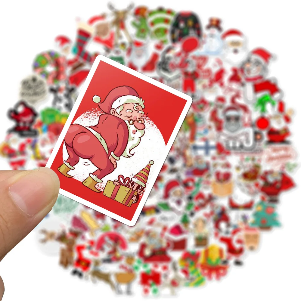 100 шт. рождественские наклейки, подарки, игрушки для детей, Санта-Клаус, северный олень, Мультяшные наклейки для сноуборда, ноутбука, мотоцикла, автомобильного шлема
